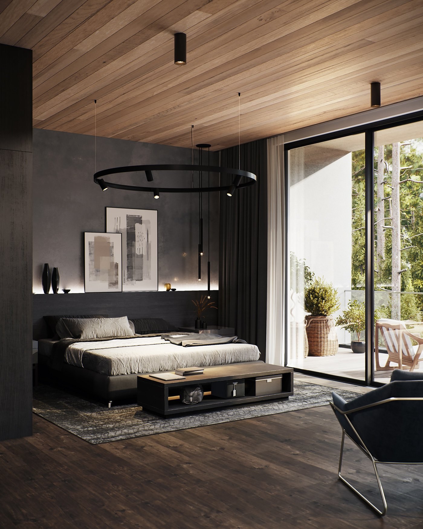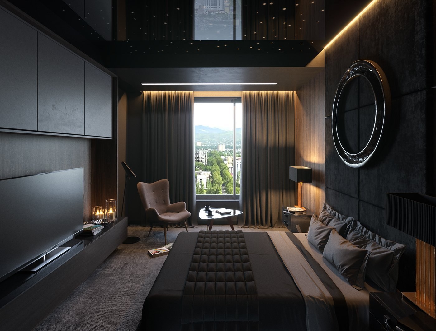 Спальня в темных тонах