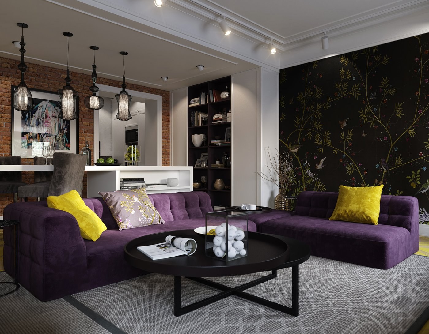 Контрастный цвет для фиолетового в интерьере (65 фото)