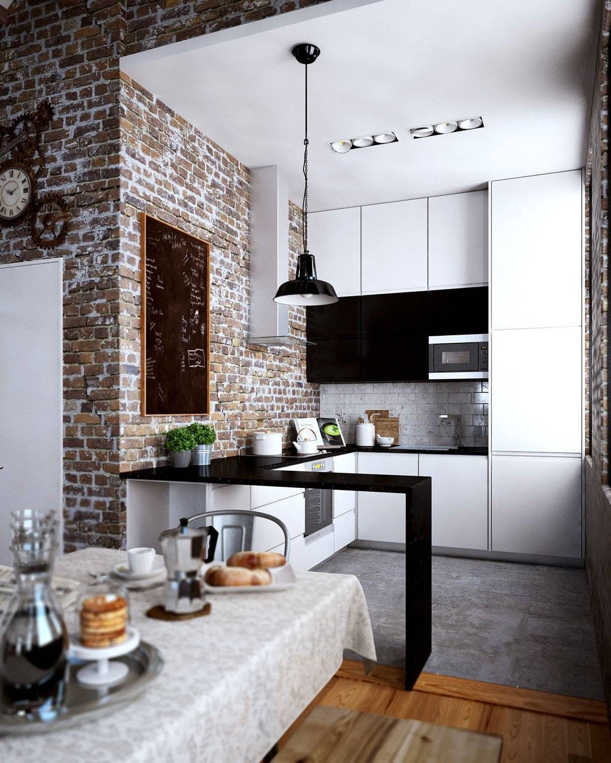 Декор кирпичной стены на кухне