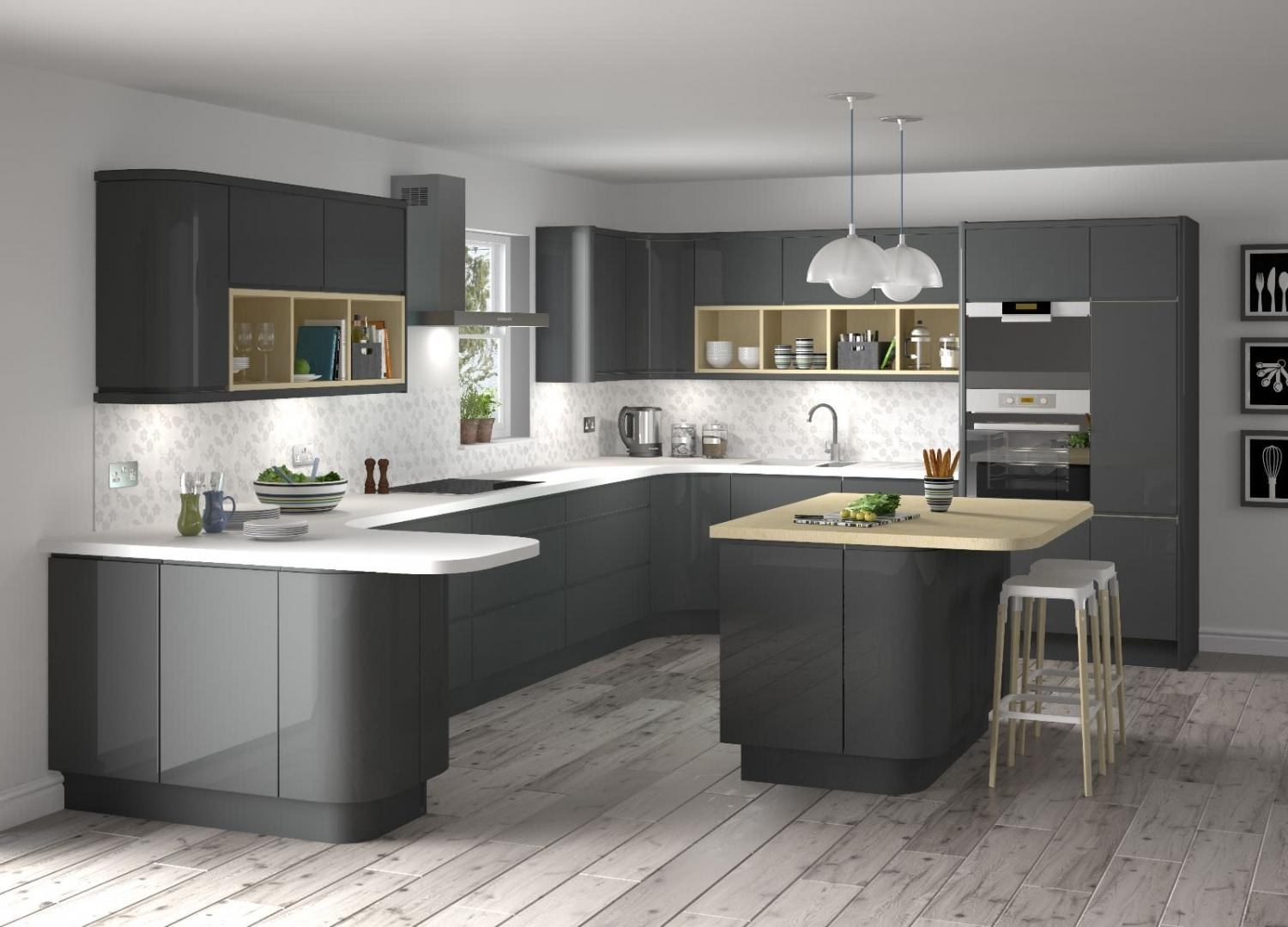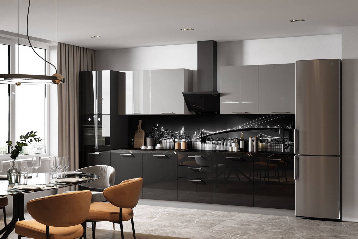 Кухня эмаль матовая 3200 ( фасад RAL 7012, каркас Пикард)
