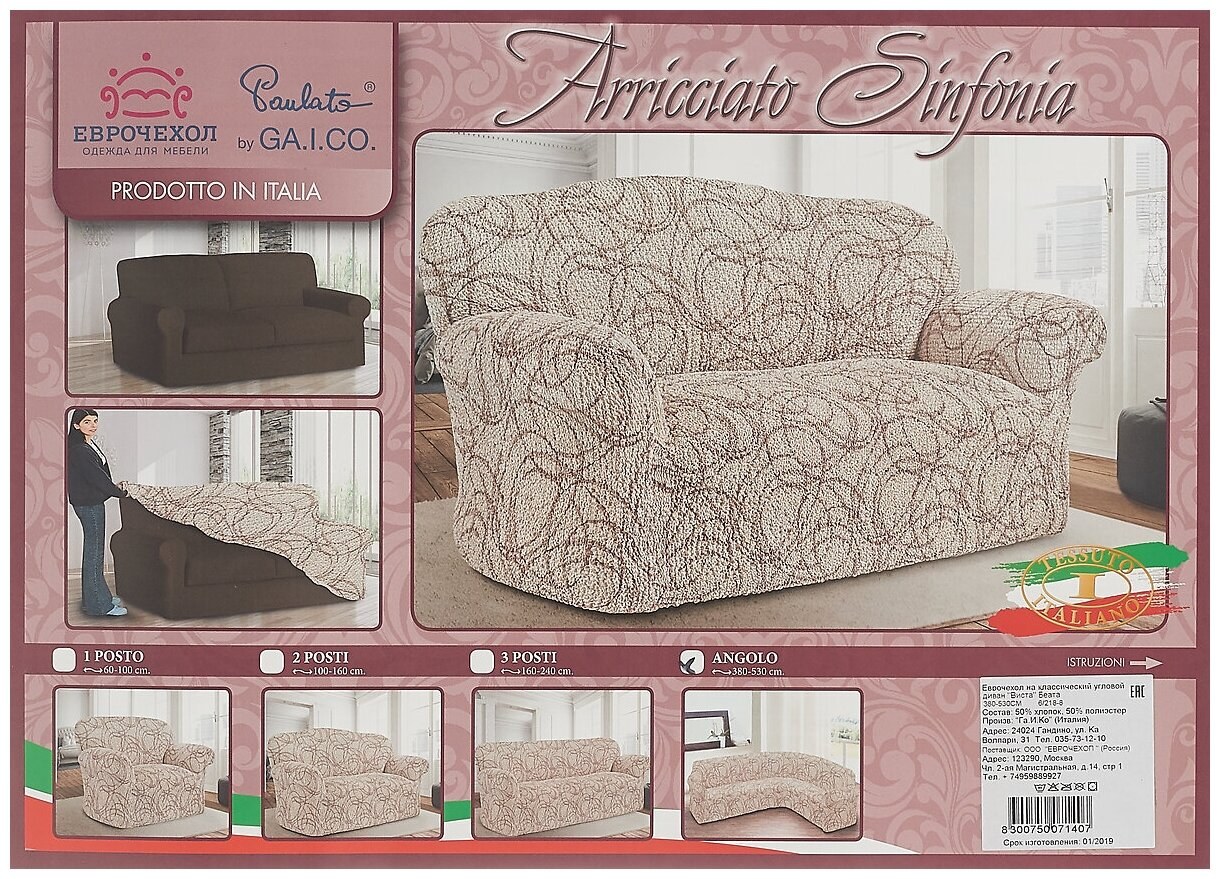 Чехол на классический угловой диван "Виста" Милано бежевый