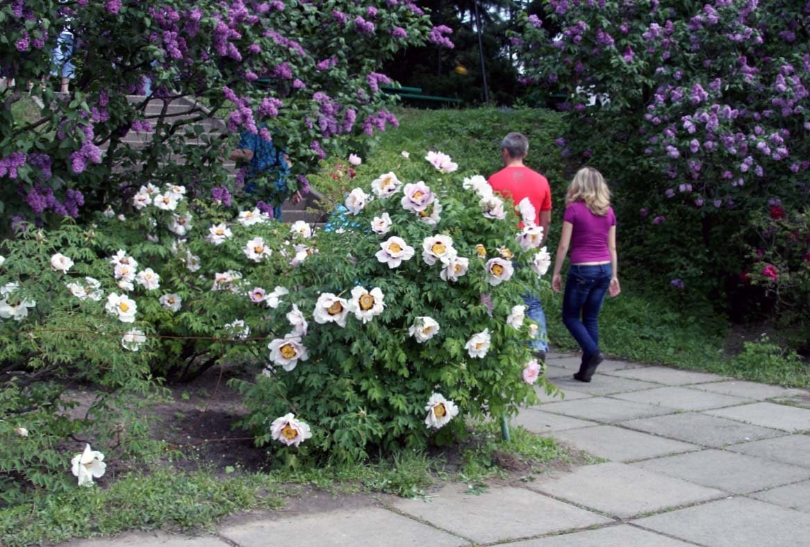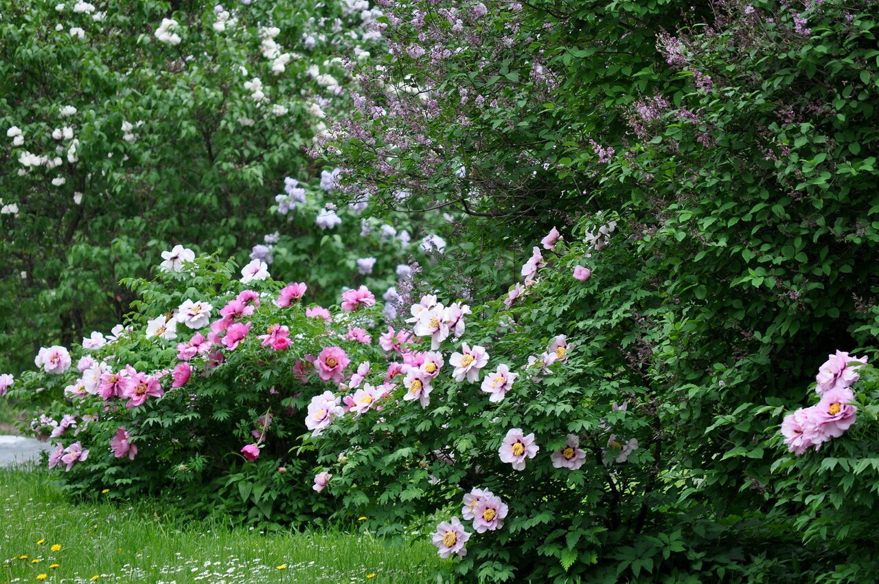 Древовидные пионы и розы