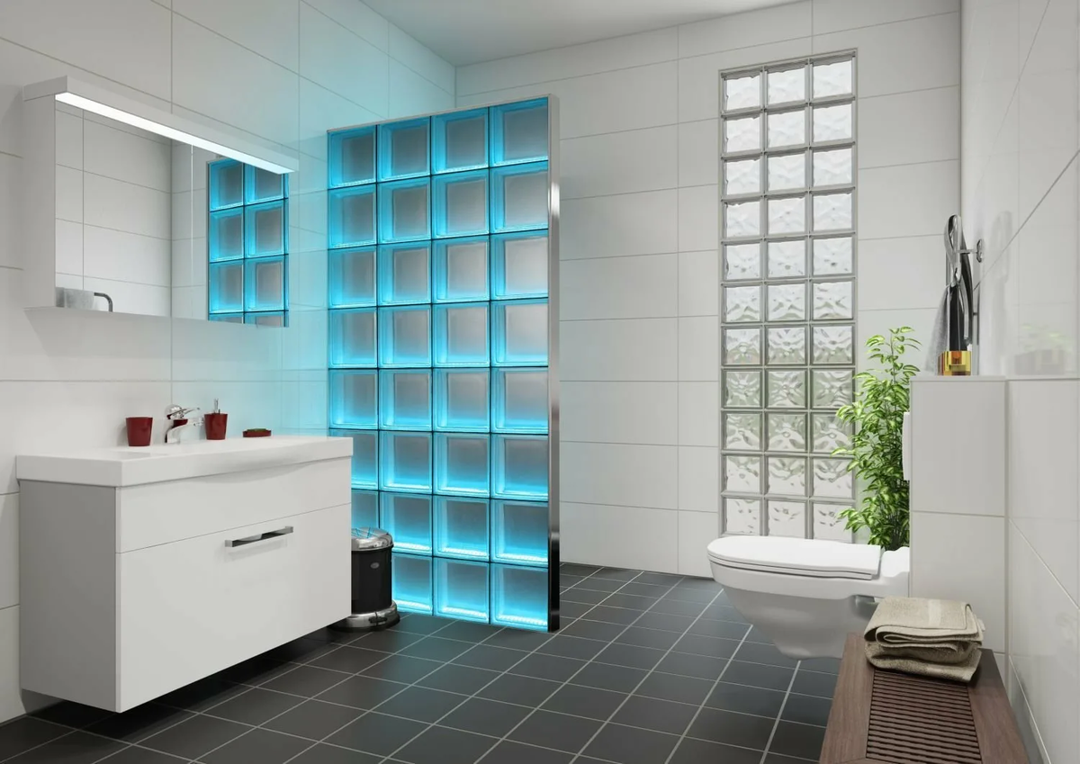 Стеклоблоки в интерьере ванной
