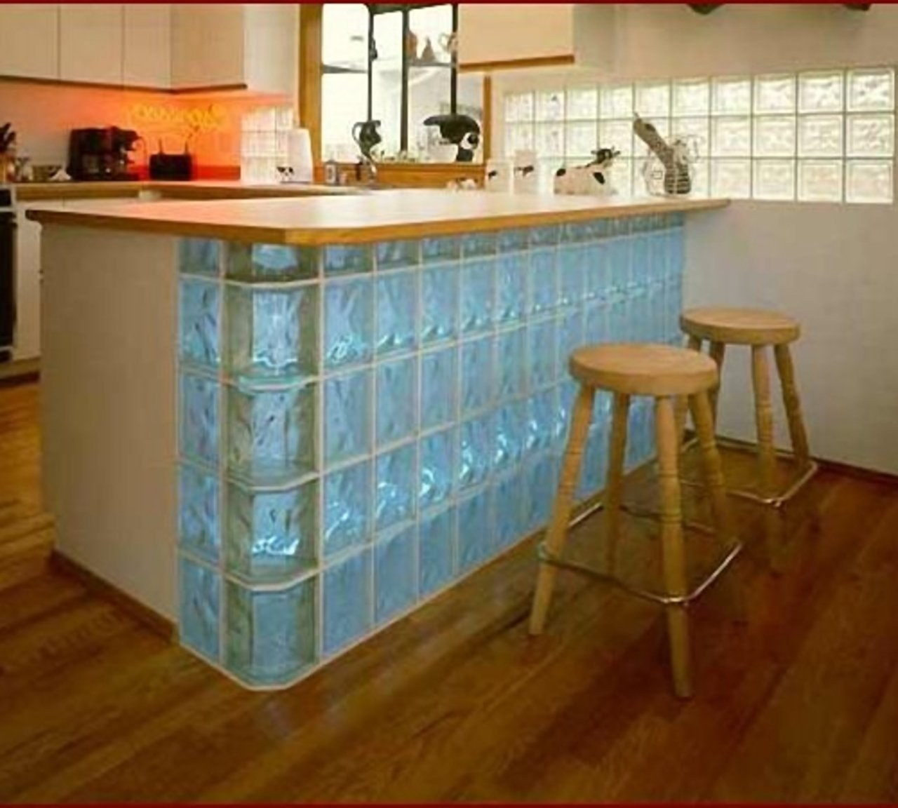 Стеклоблоки в интерьере кухни