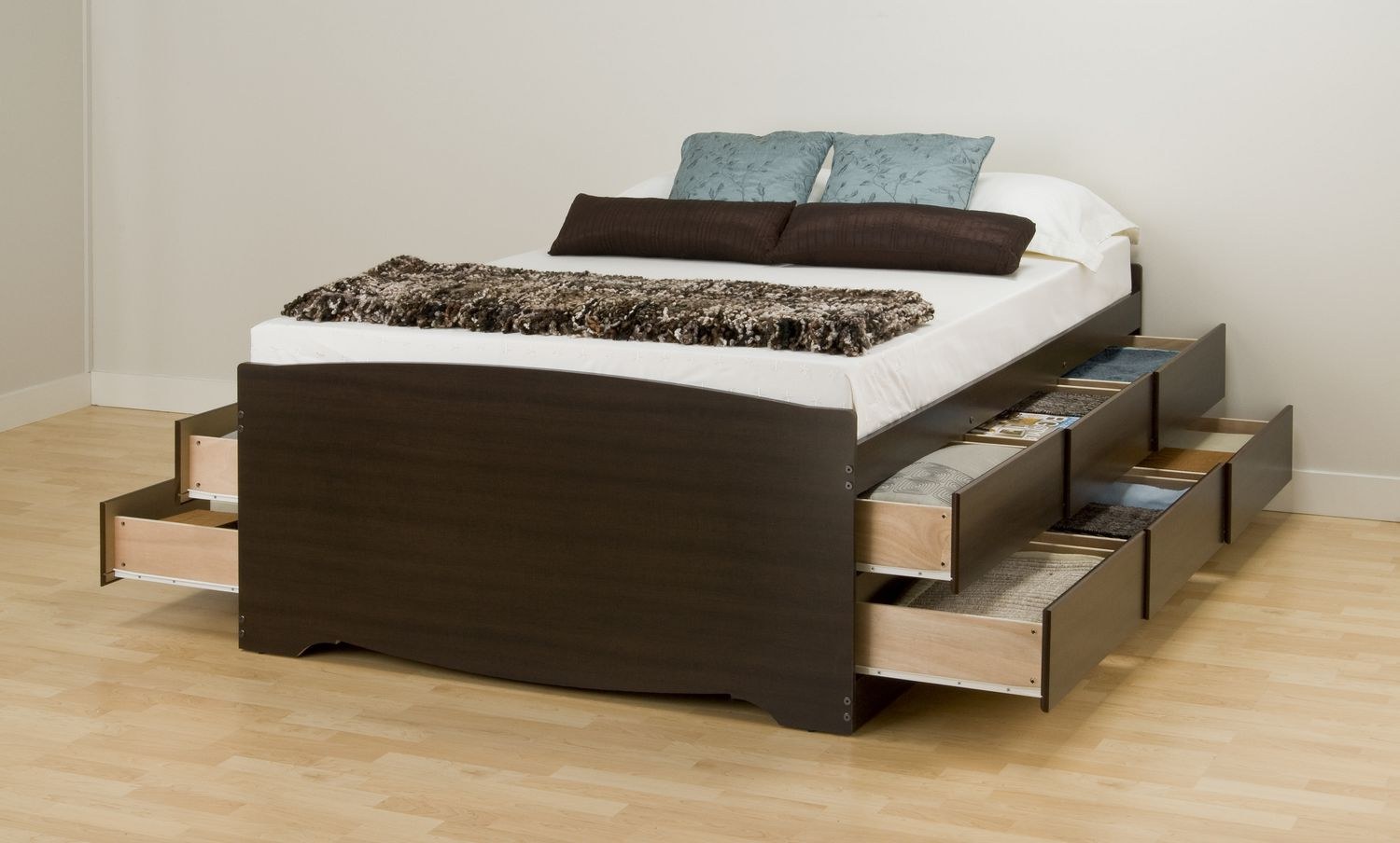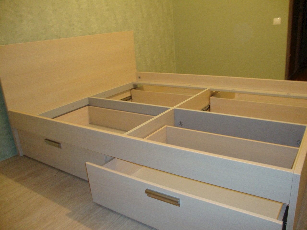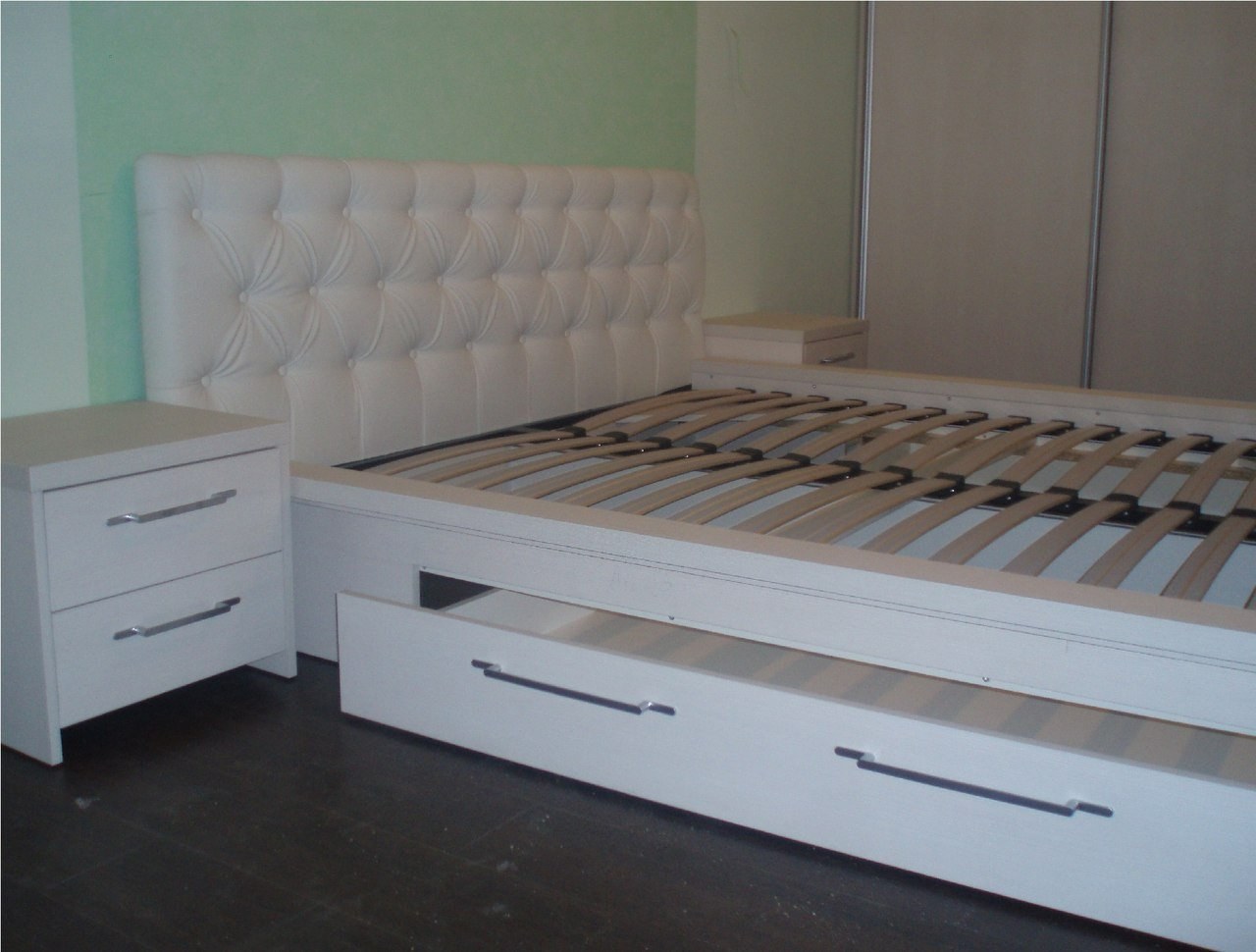 Кровати двуспальные с мягким изголовьем и выдвижными ящиками