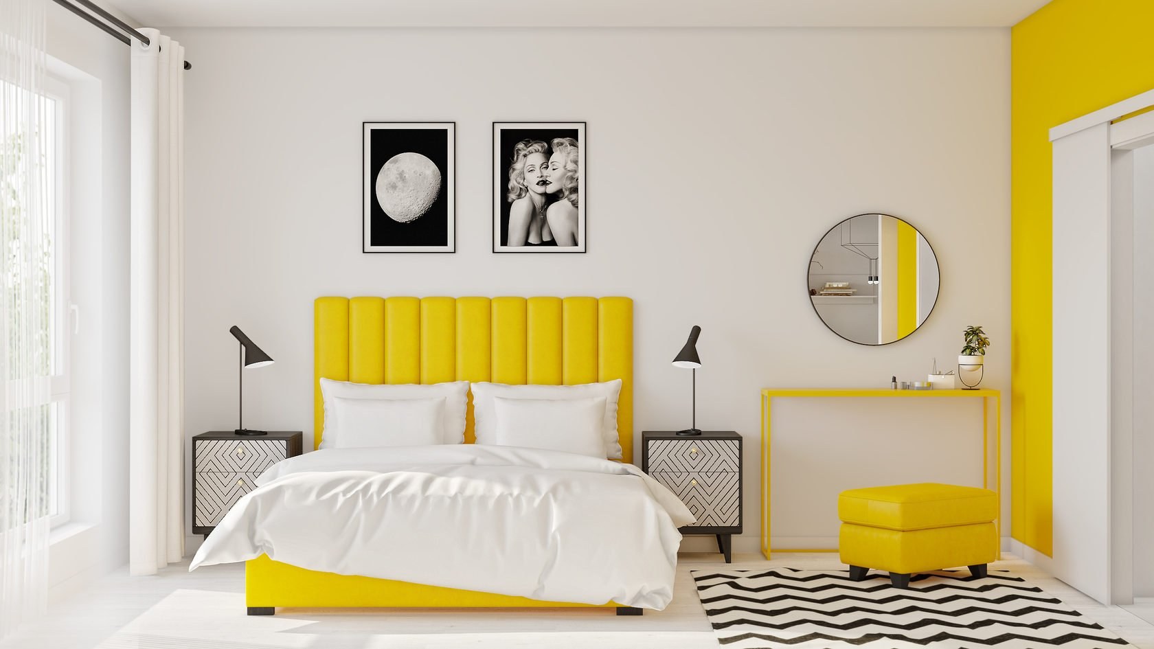 Комната с желтыми шторами