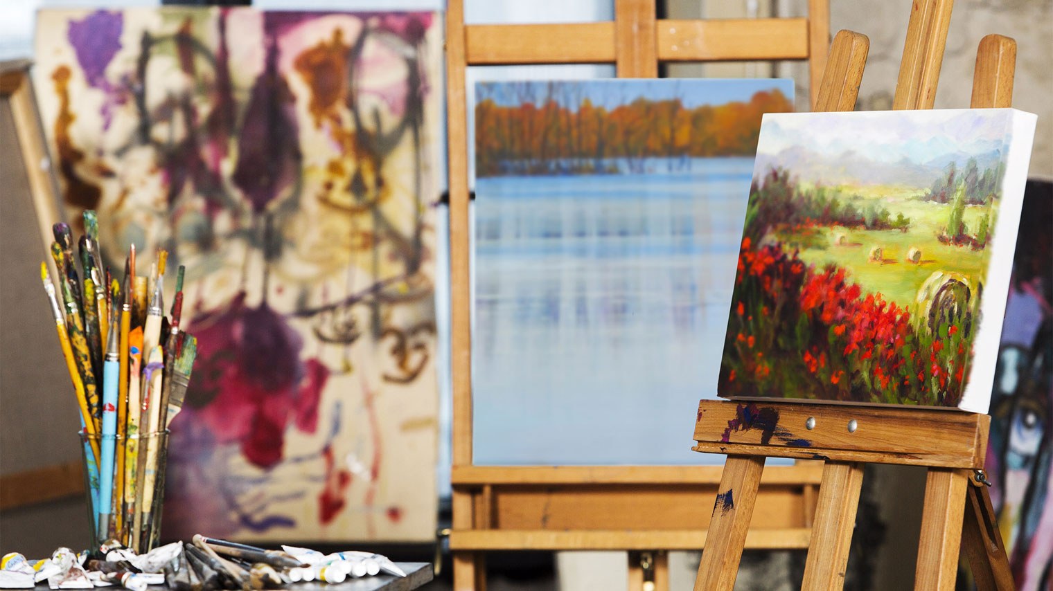 Мольберт с холстом и красками