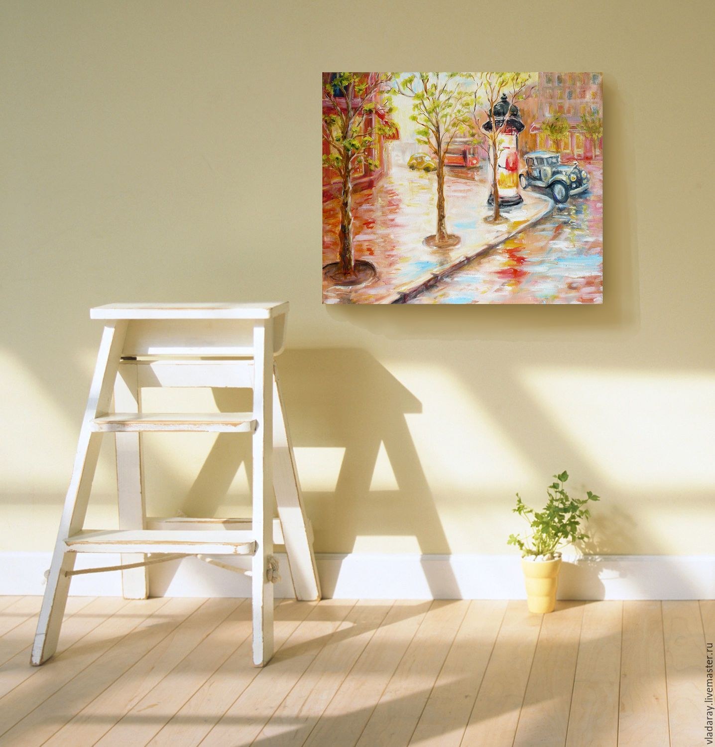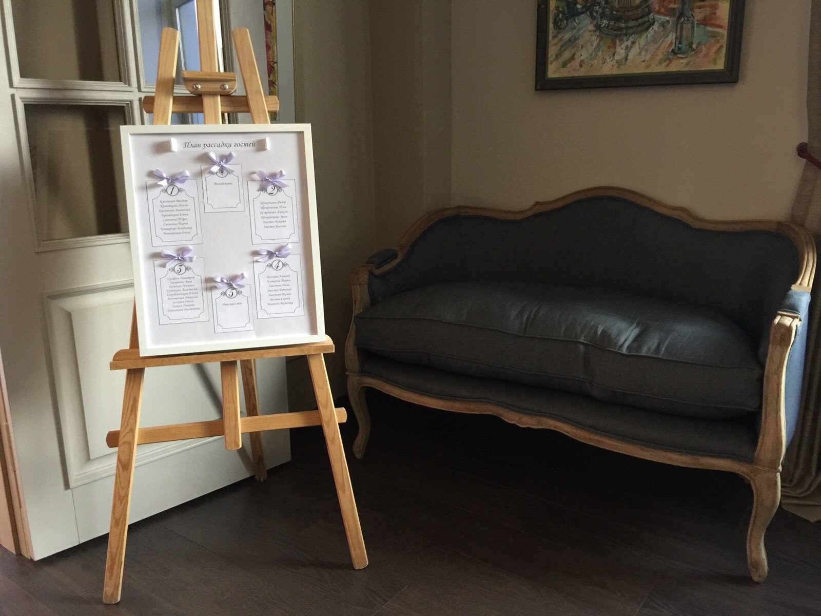 Картина на мольберте в интерьере гостиной