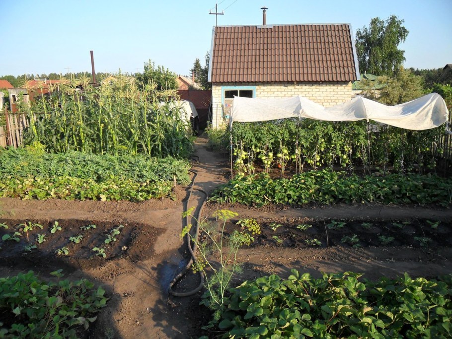 Планировка огорода с теплицей