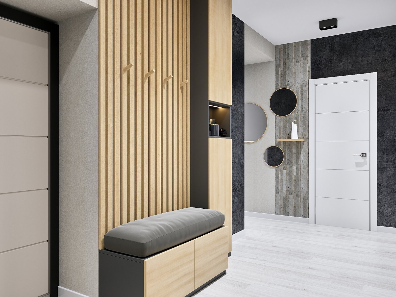 Прихожая в современном стиле с рейками