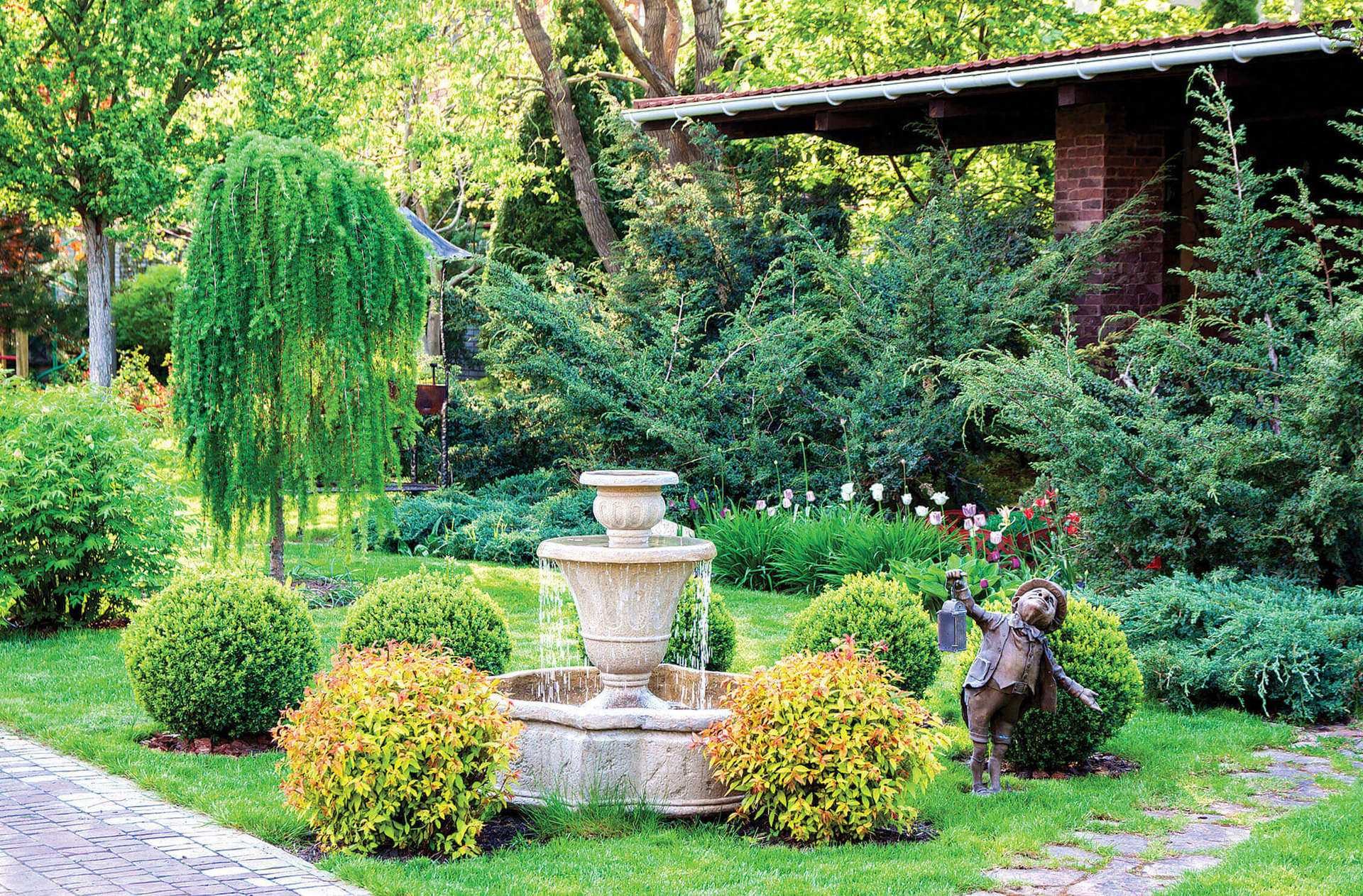 Миксбордер с лиственницей плакучей