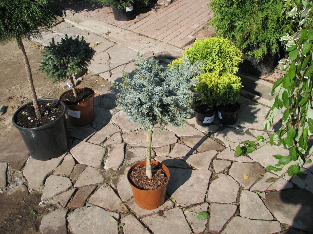 Ива на штамбе в композиции с хвойниками