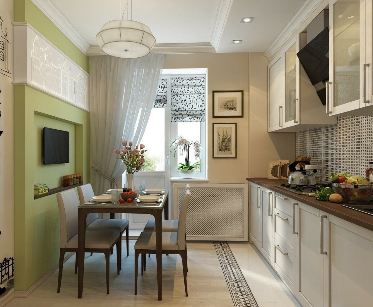 Интерьер кухни 11м2 с выходом на балкон квадратная
