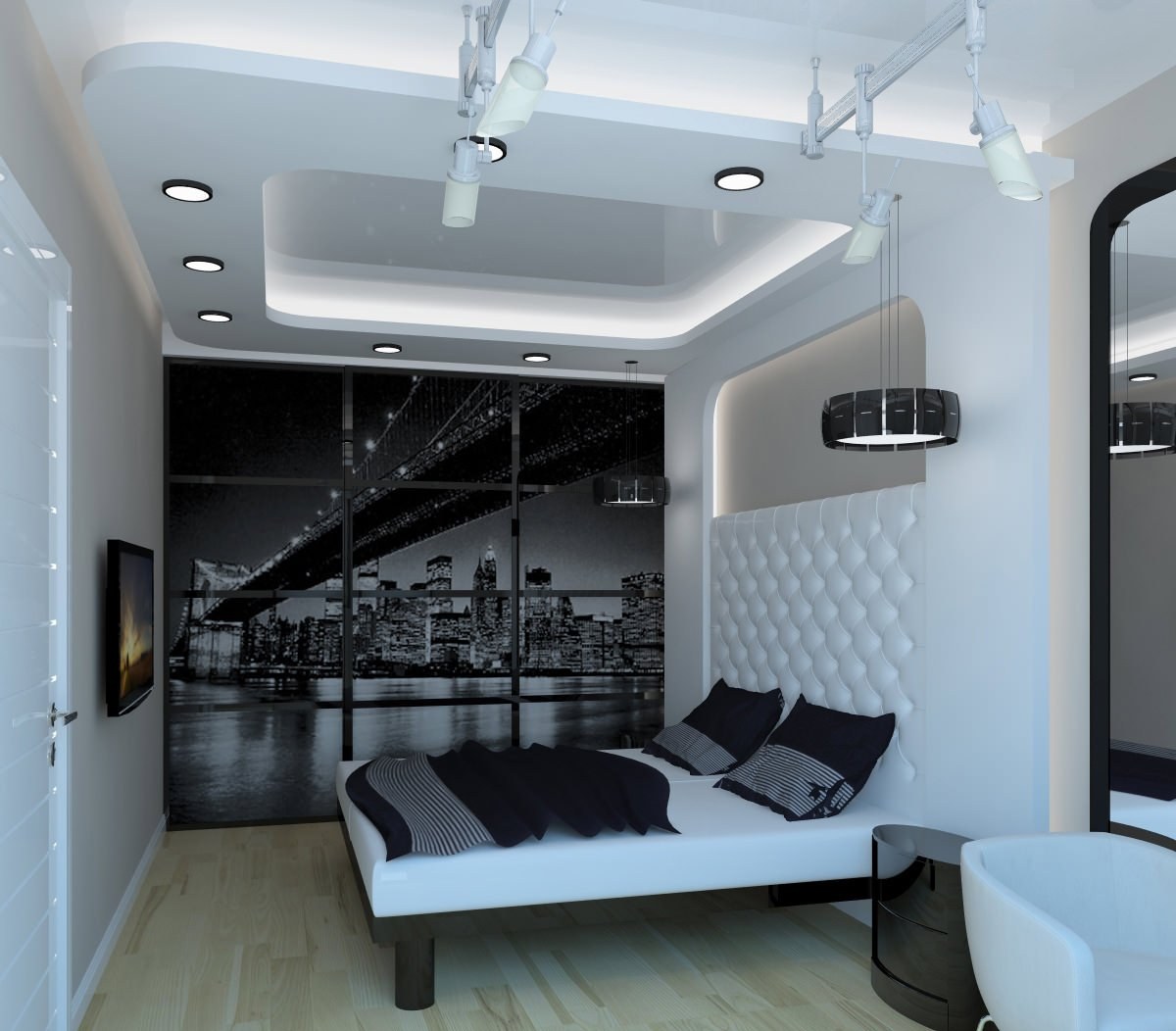 Спальня в белых тонах хайтек