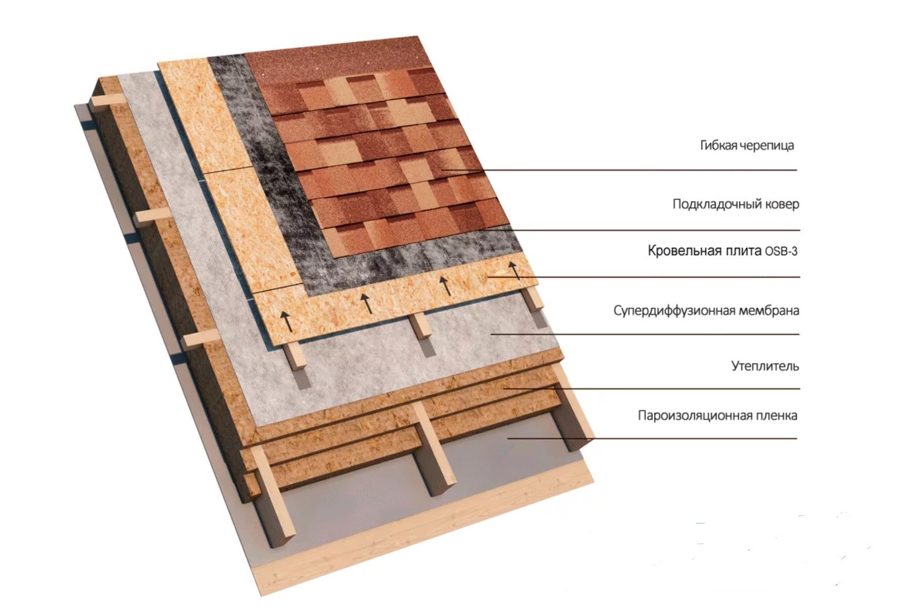 Пирог крыши ТЕХНОНИКОЛЬ под гибкую черепицу