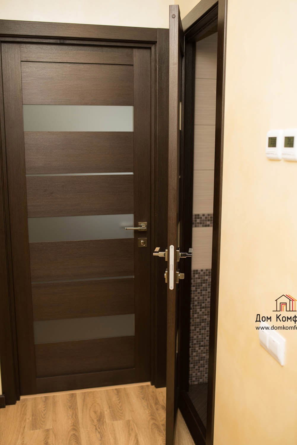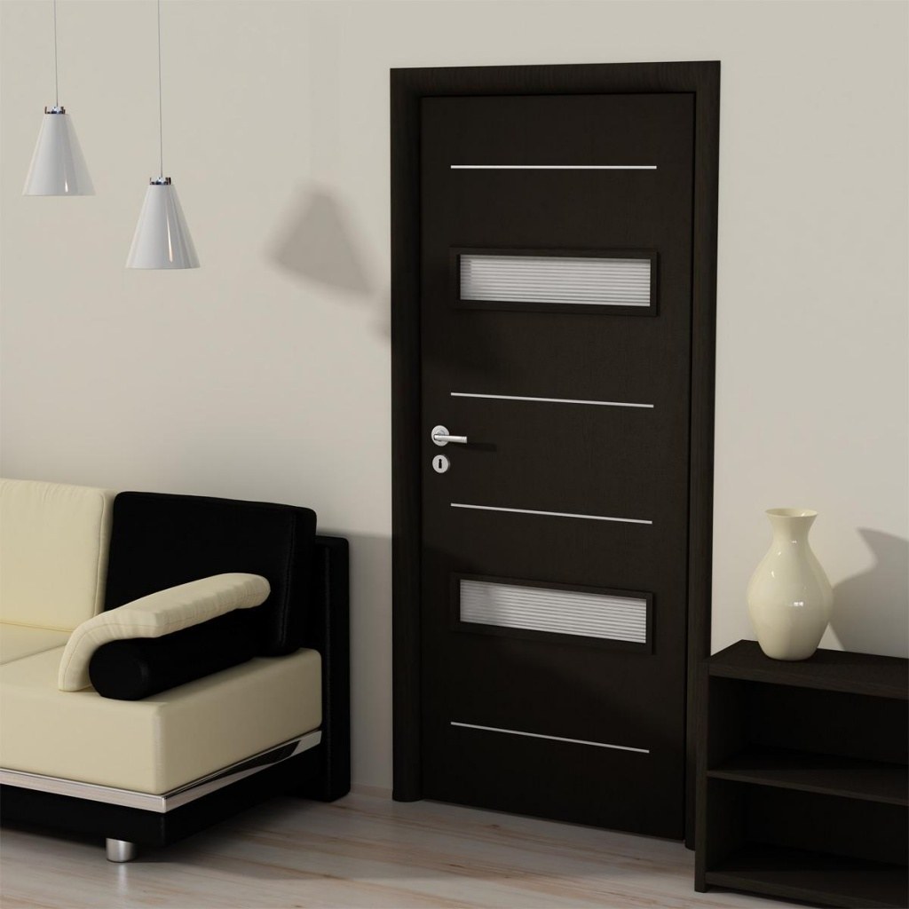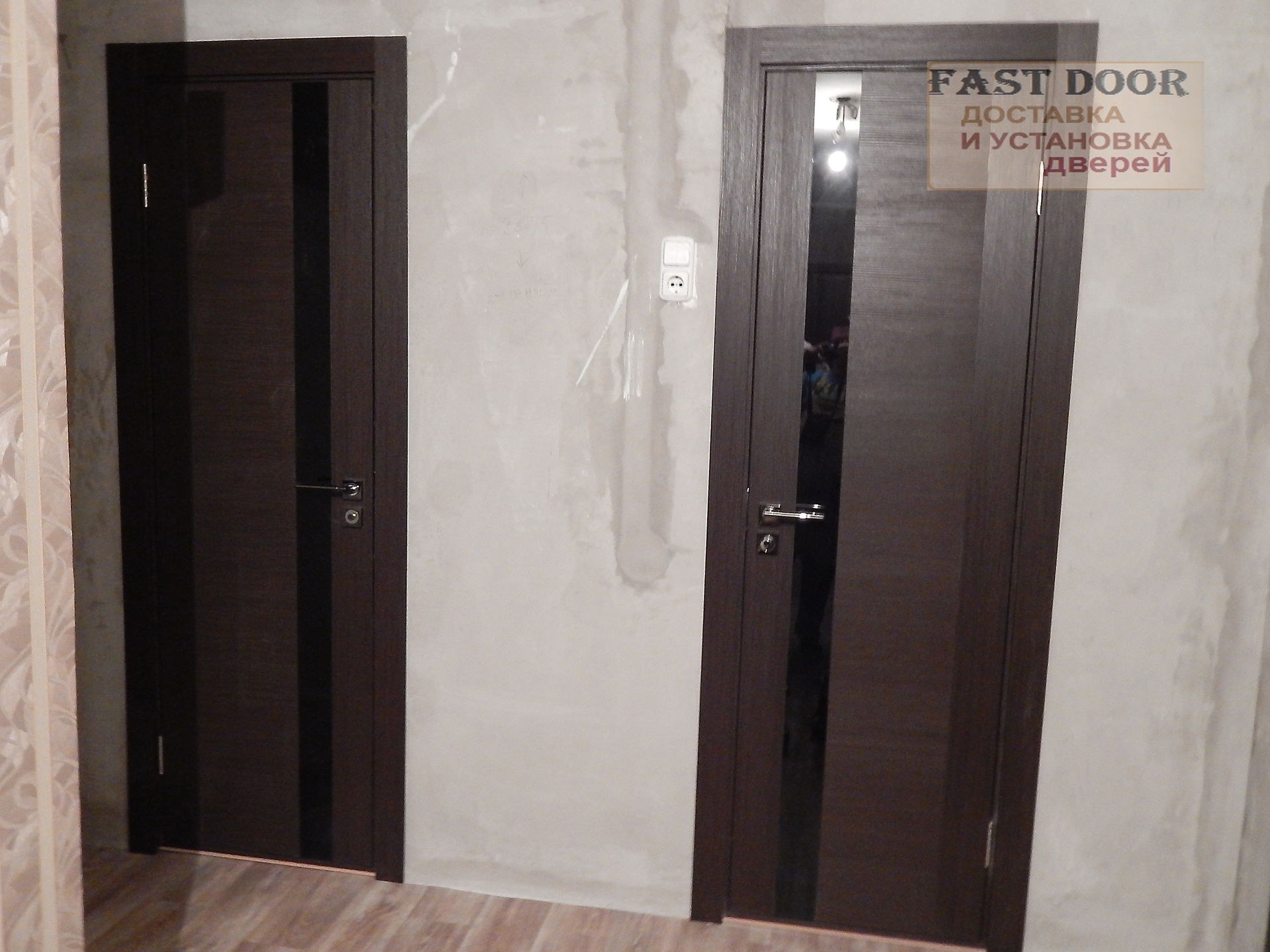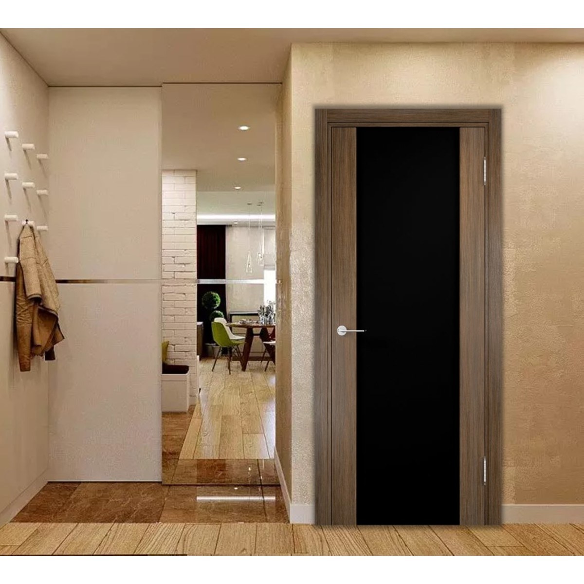 Дверь экошпон (Тип Тоскана-1, 70, ОСТ, эмалит белый, стекло черное)