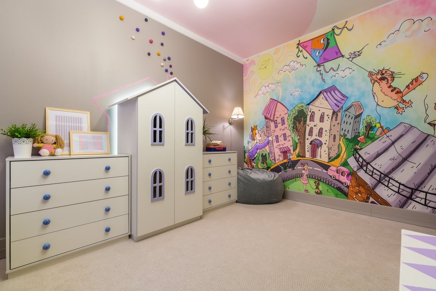 Домики на стене в детской