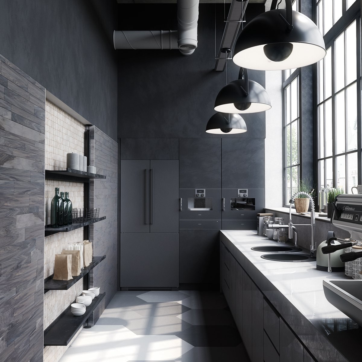 Темная кухня лофт