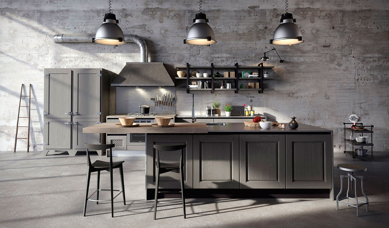 Кухня в стиле лофт бетон
