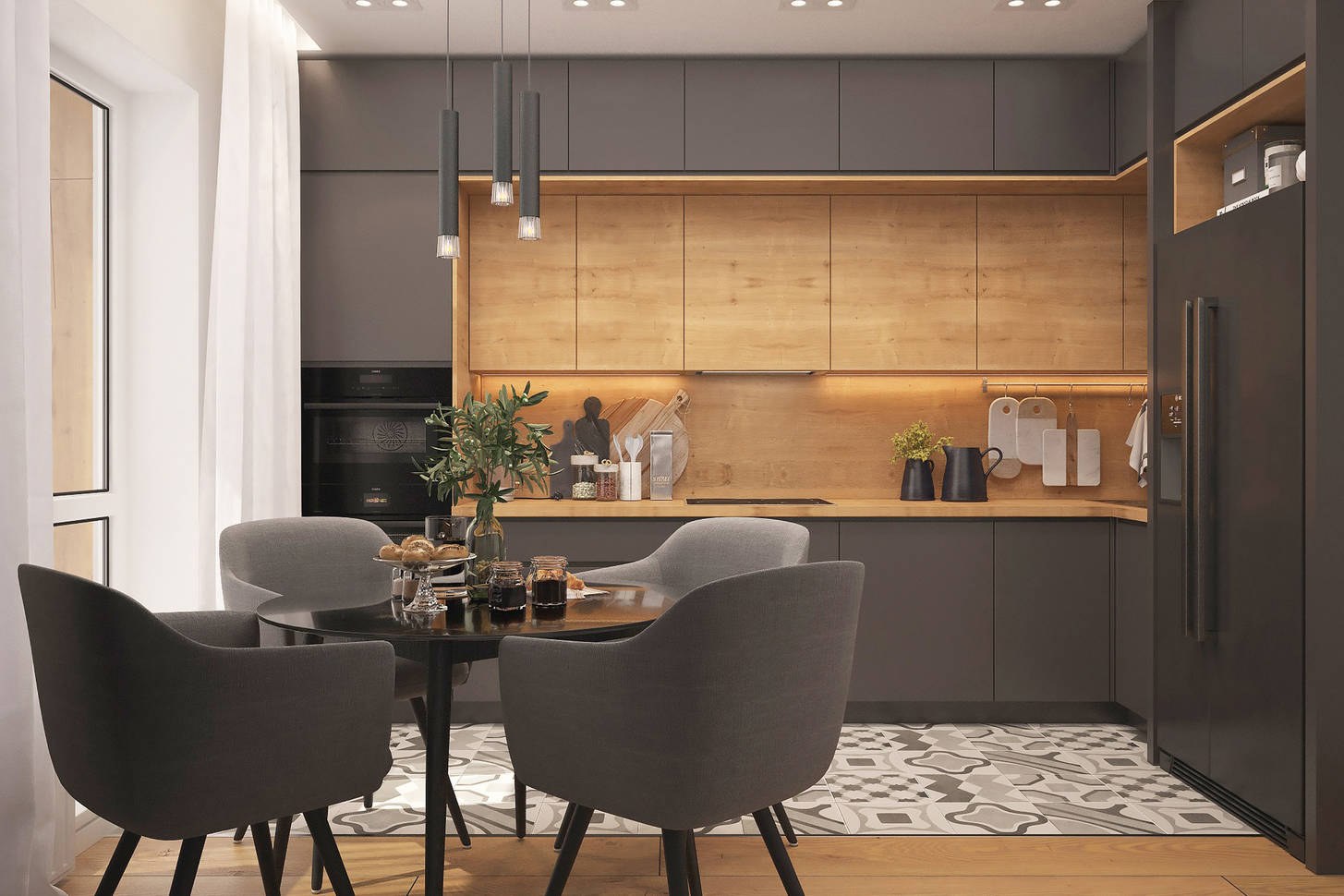 Интерьер серой кухни