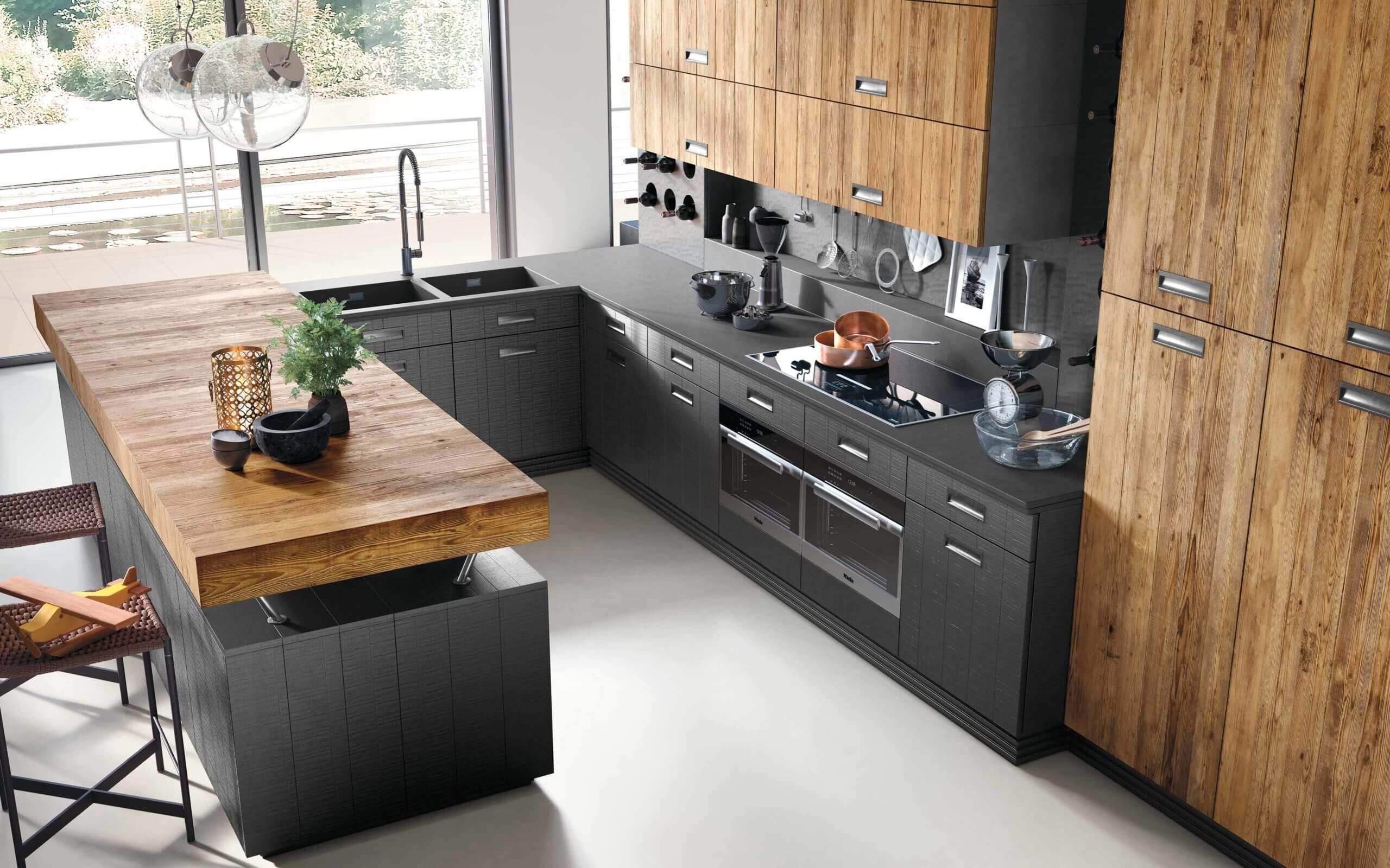 Кухни лофт столешня под дерево
