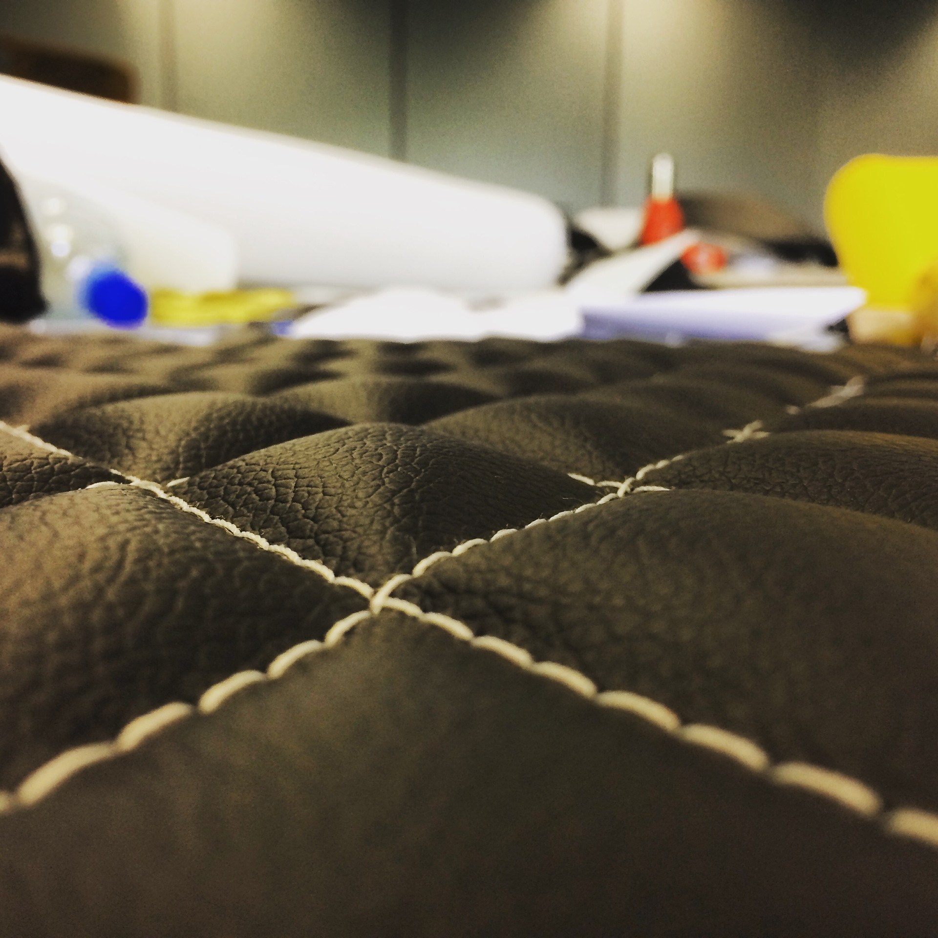 Декоративный шов на обивке из кожзама дивана на дому