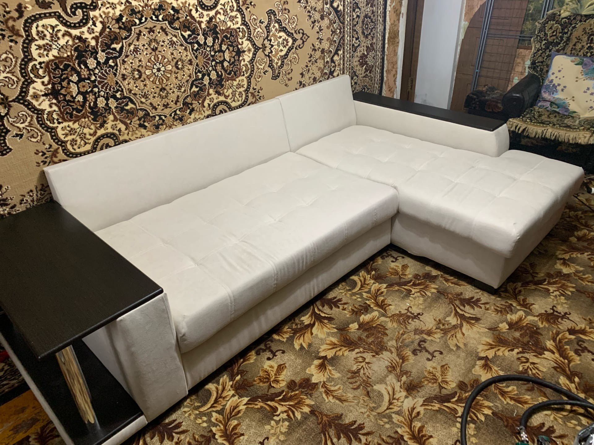 Угловой диван с каретной стяжкой