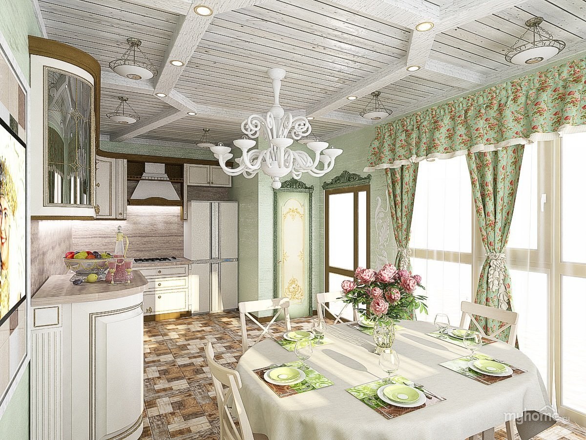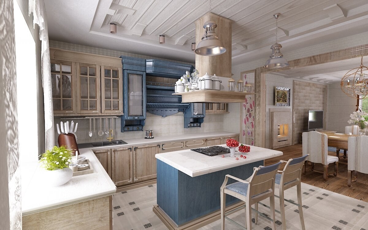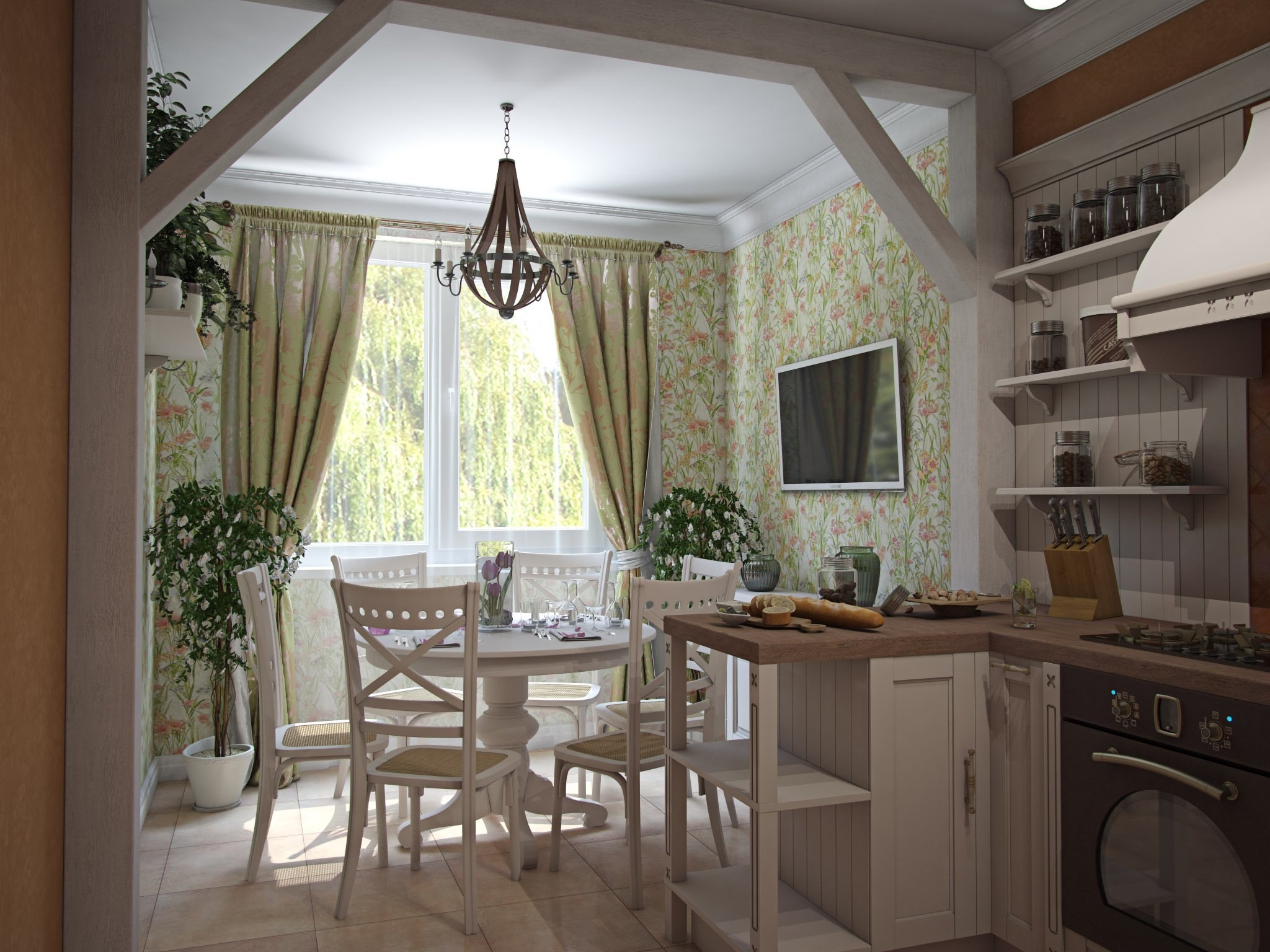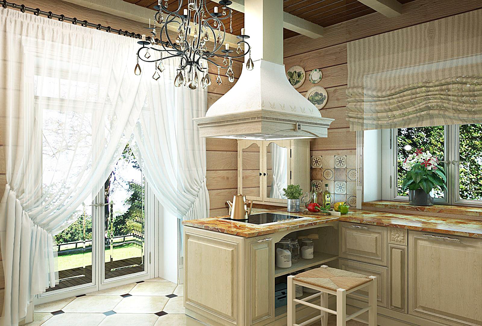 Кухни в деревянном доме в стиле Прованс и Кантри