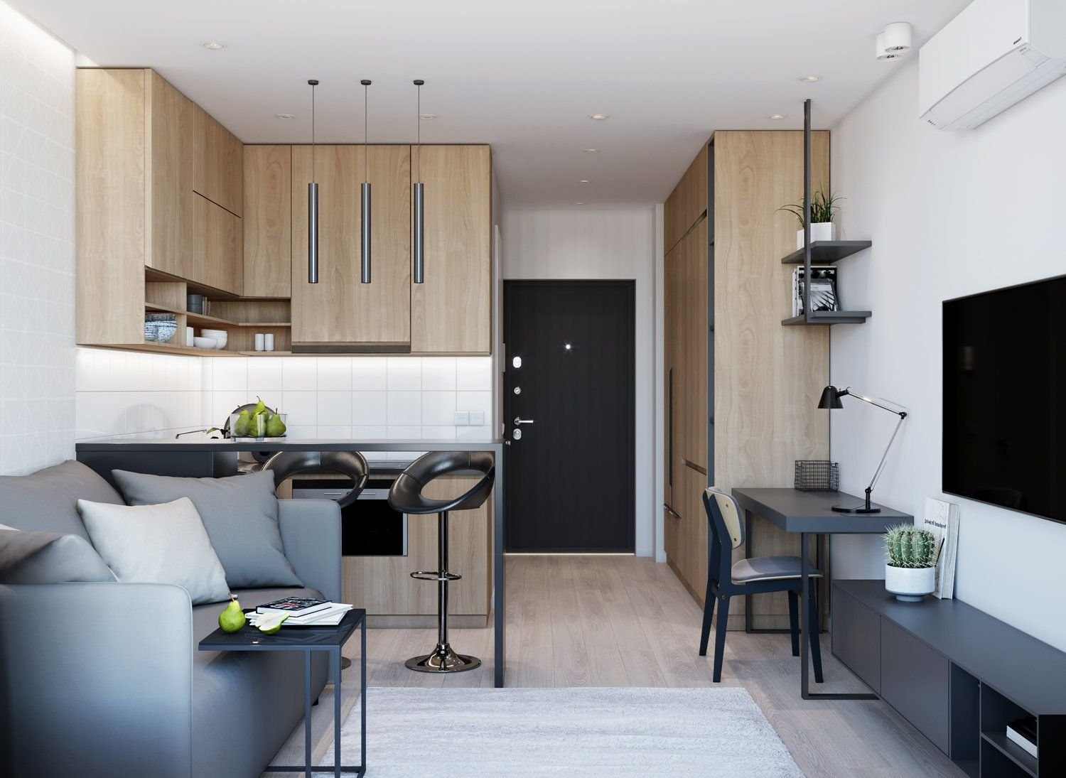 Интерьер квартиры студии 25 кв.м в скандинавском стиле