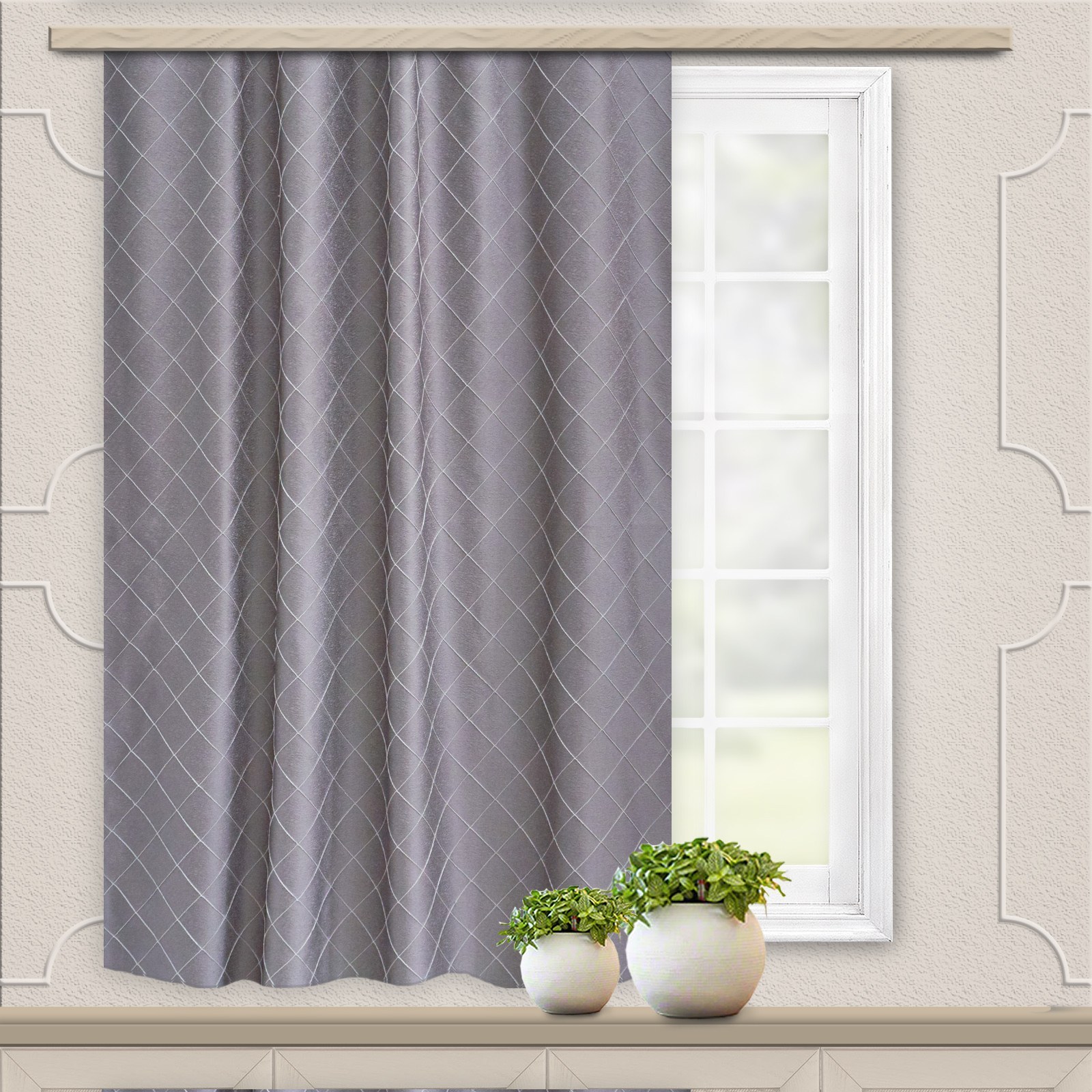 Шторы серые в ромбик