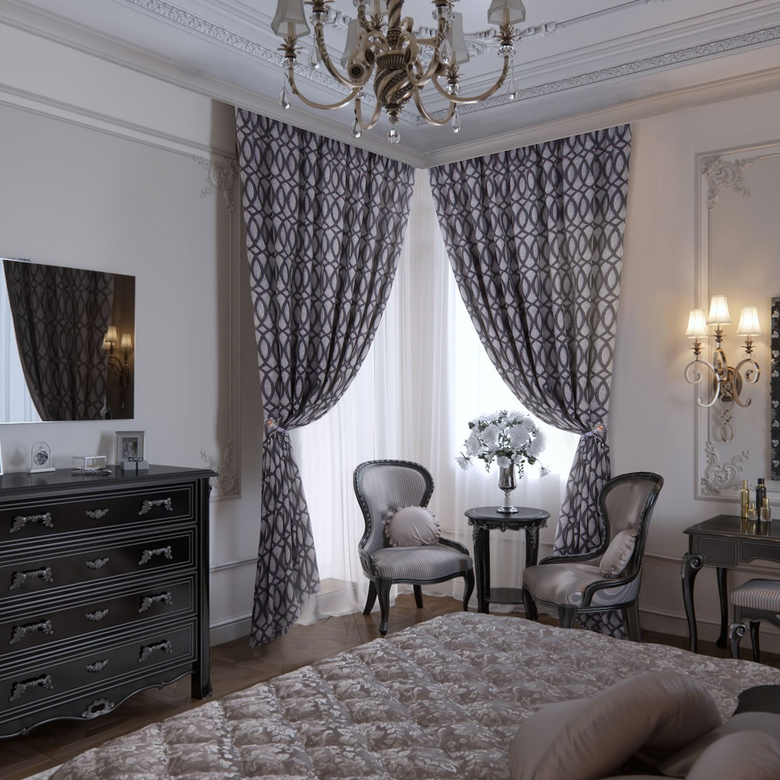Шторы с орнаментом в интерьере