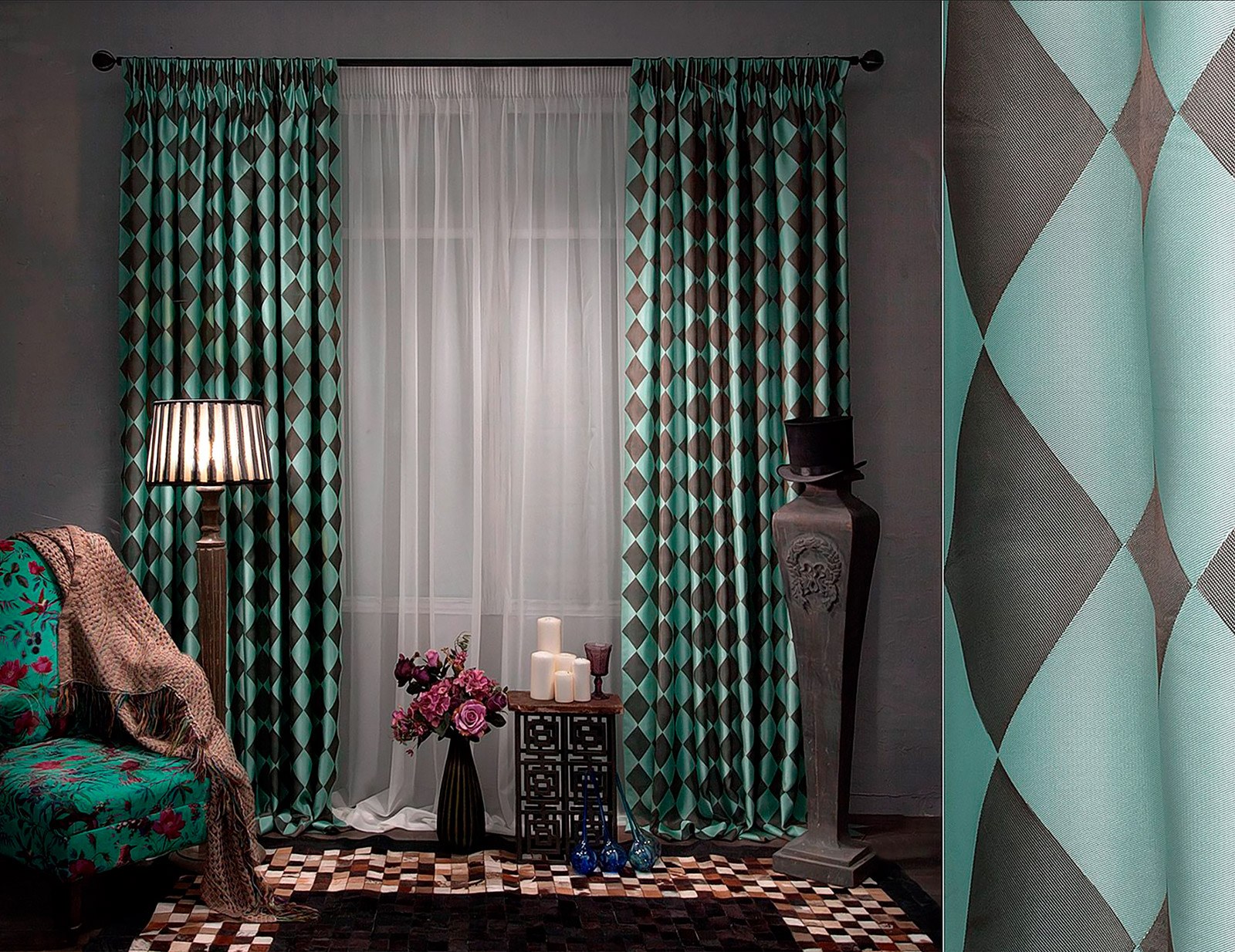 Шторы в ромбик в интерьере (55 фото)