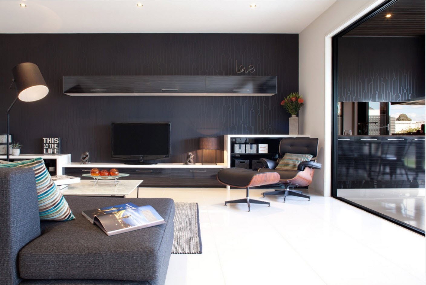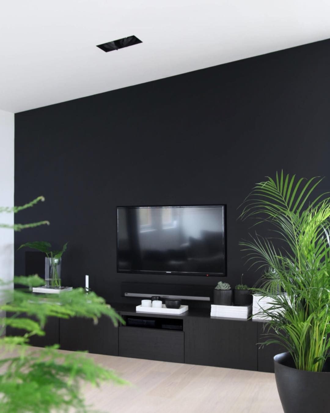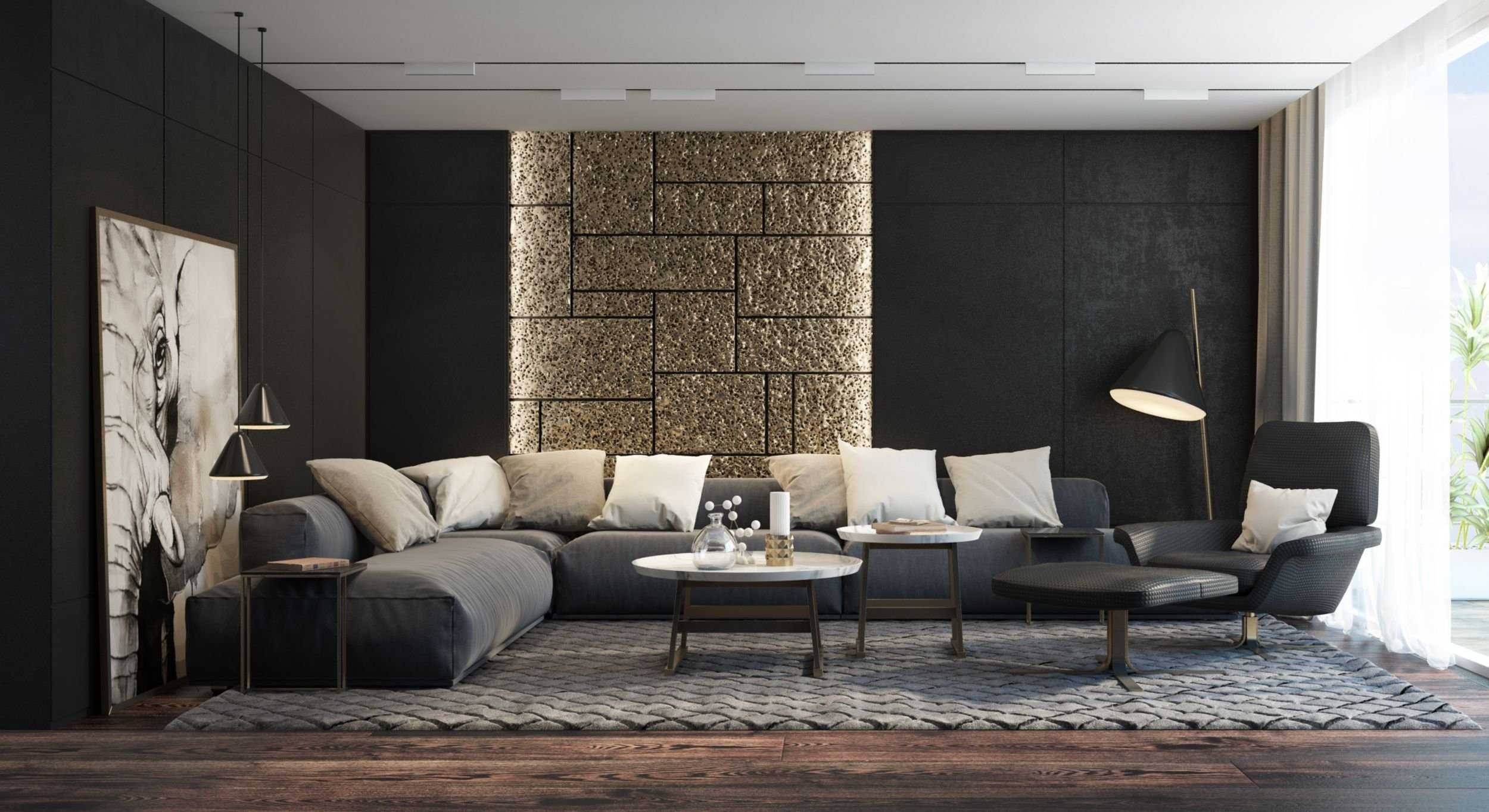 Черная стена в интерьере гостиной (65 фото)