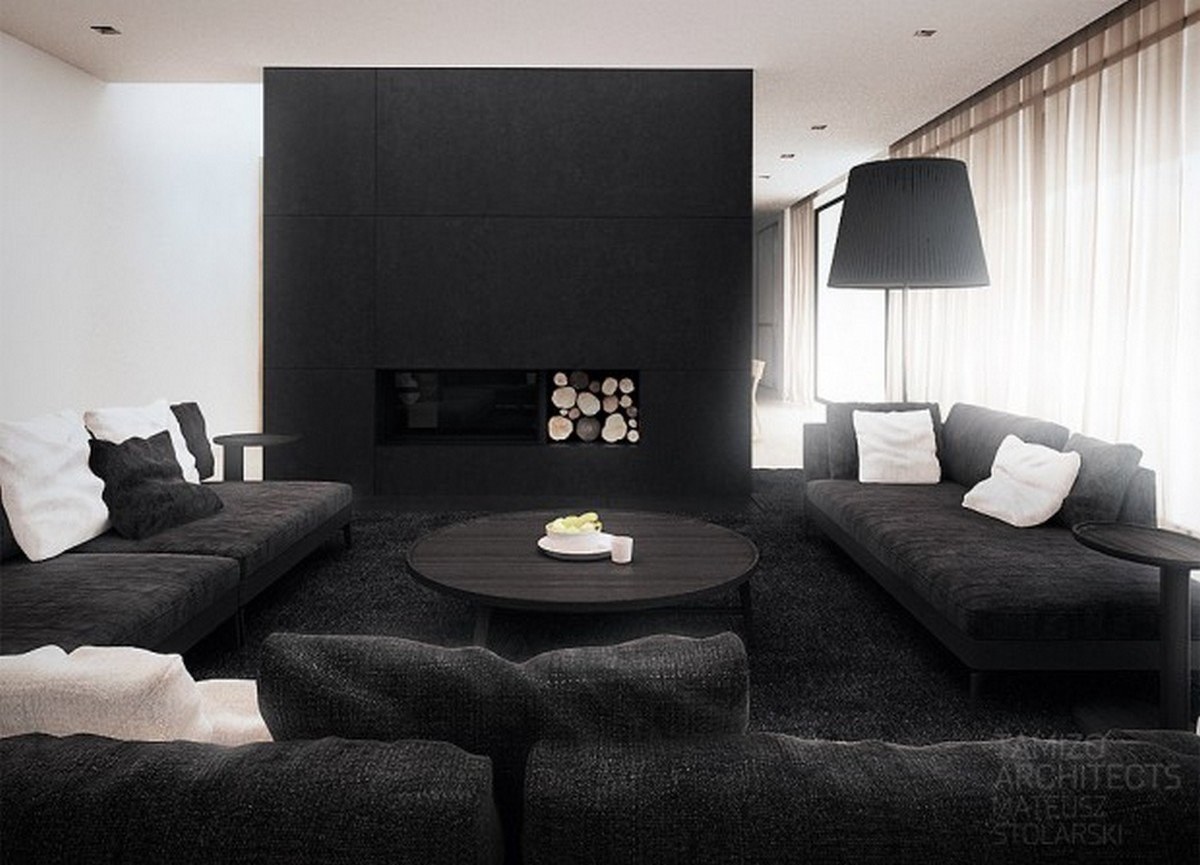 Черный цвет в интерьере гостиной