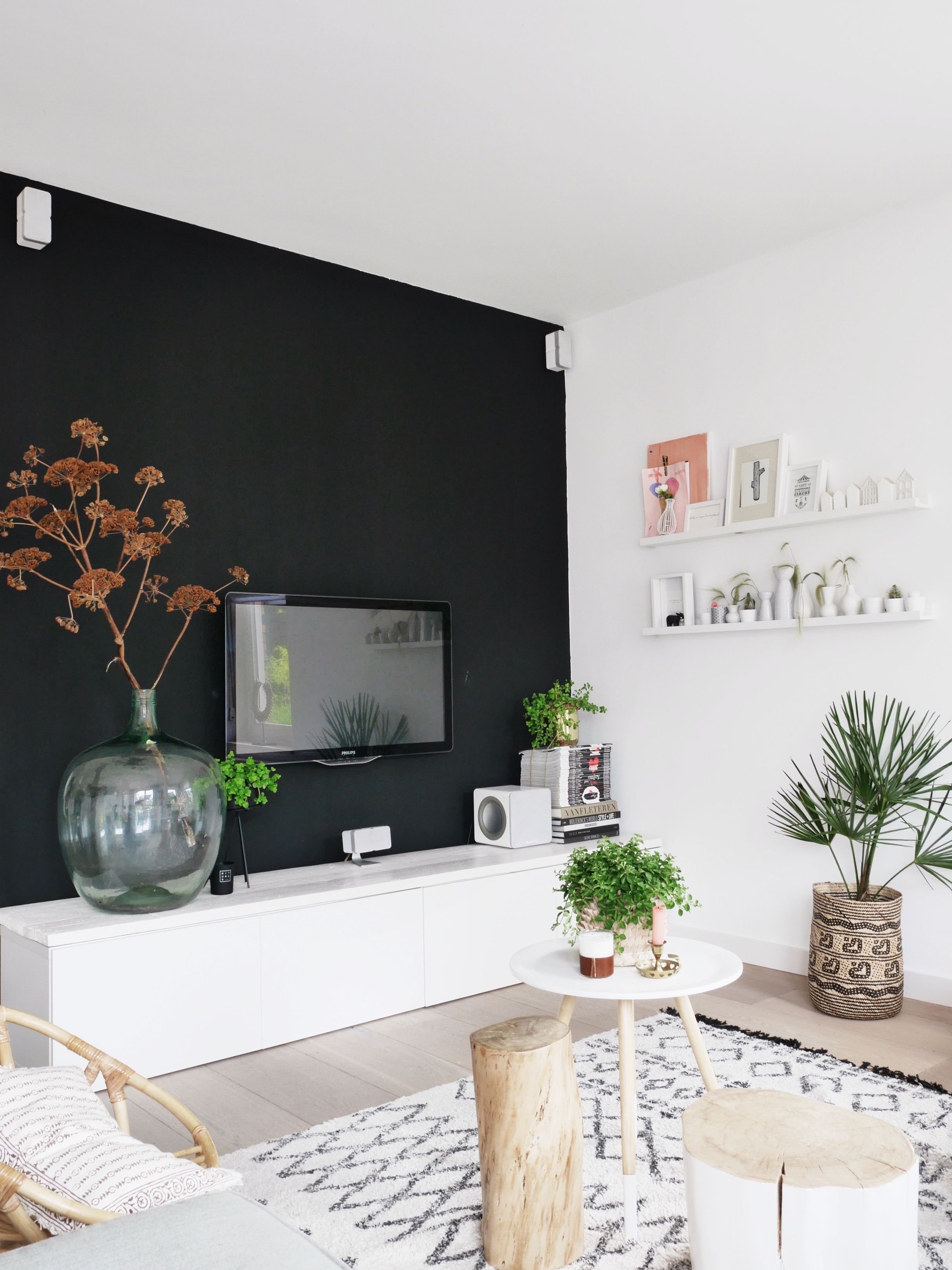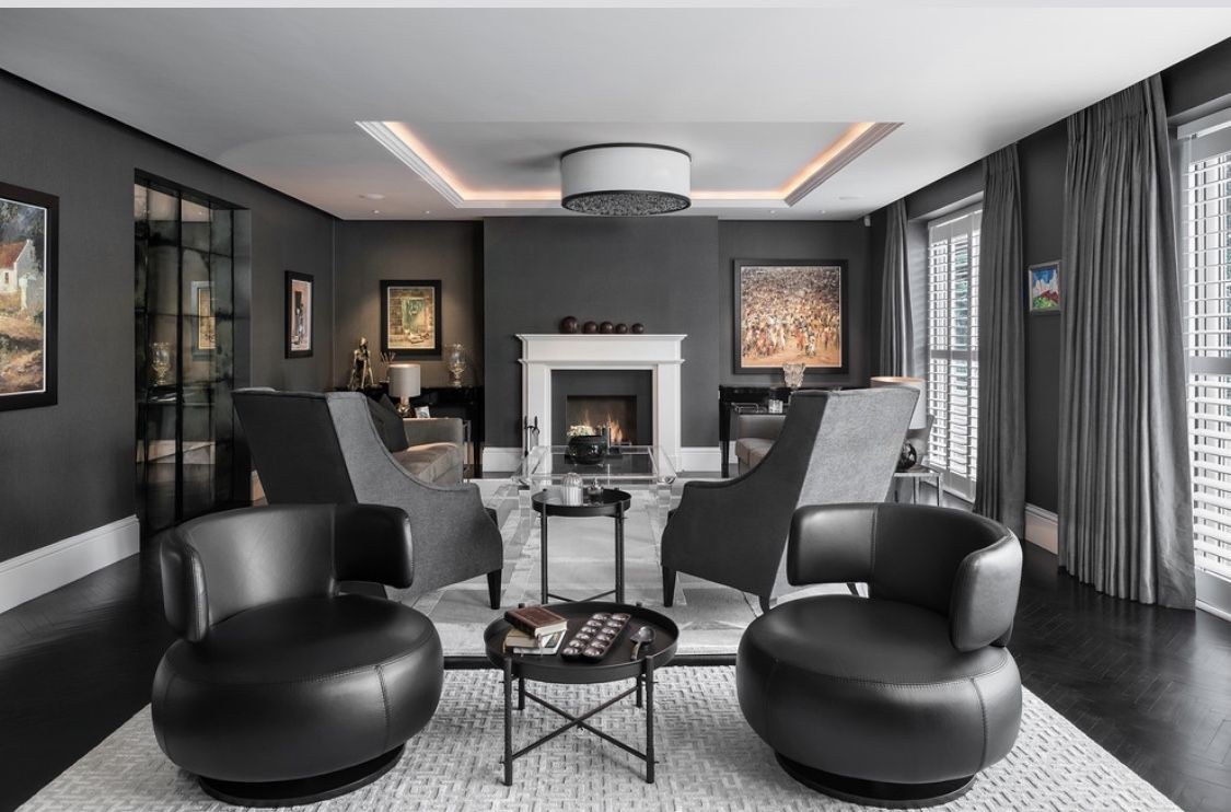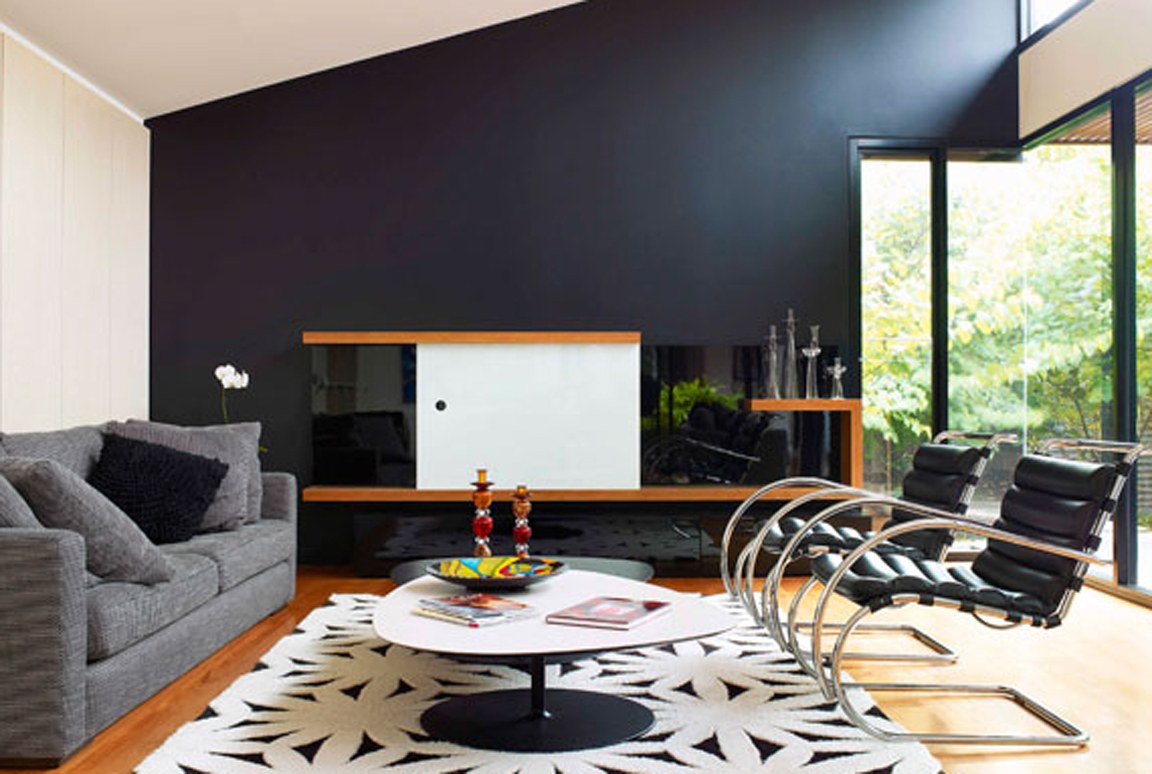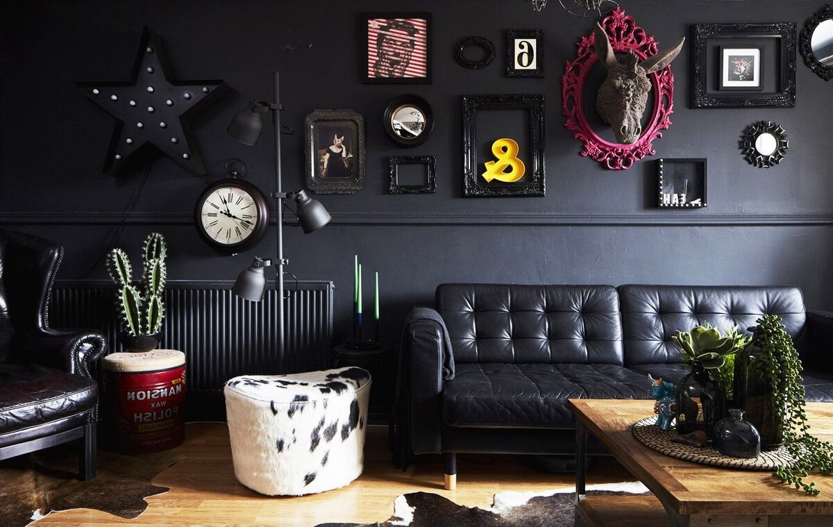 Гостиная с черной стеной