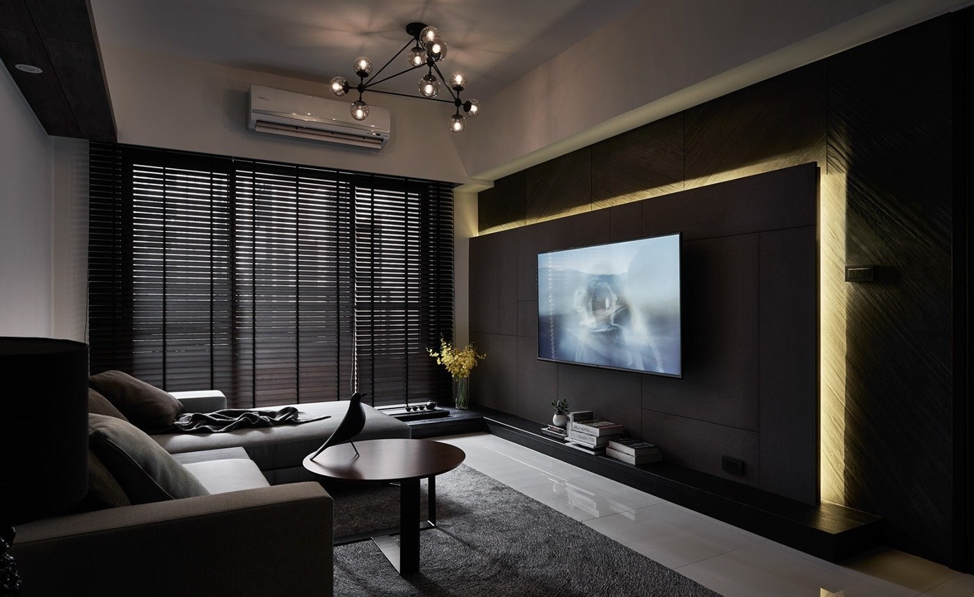 Телевизор на черном фоне в интерьере