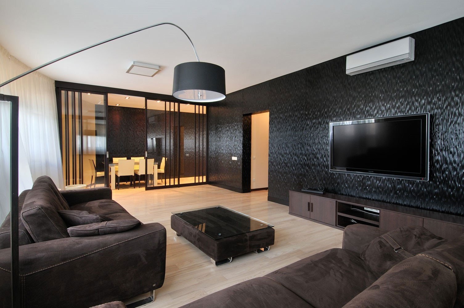 Черные панели в интерьере гостиной