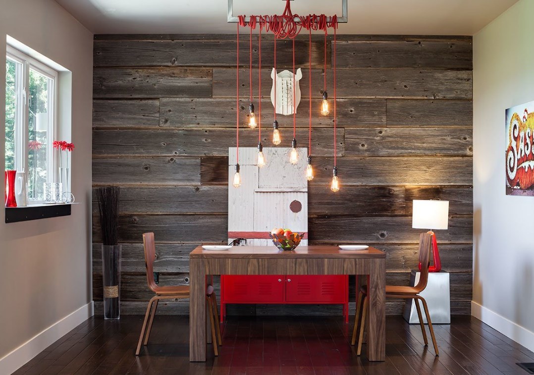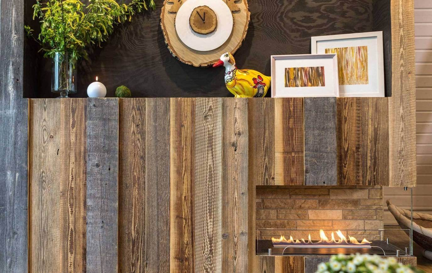 Стена из амбарной доски в интерьере