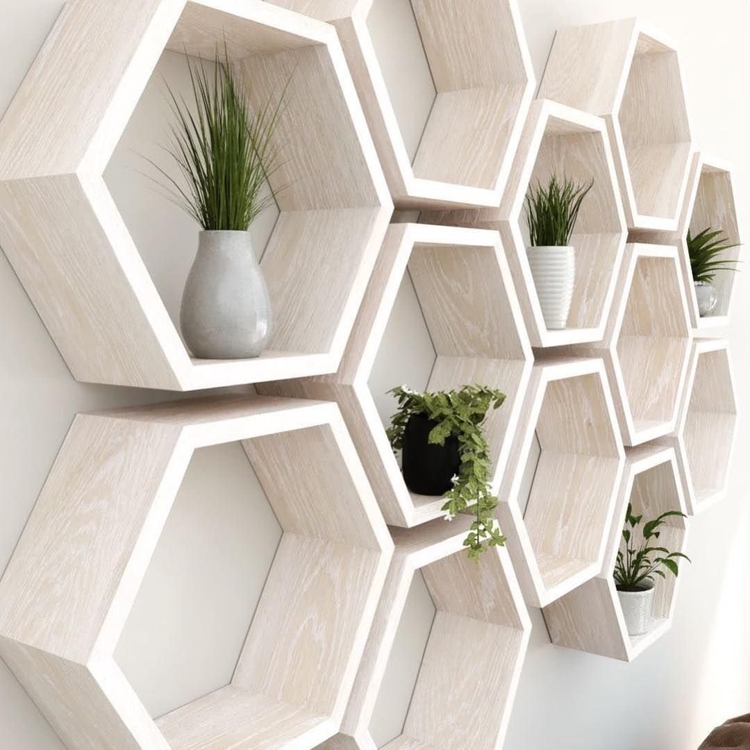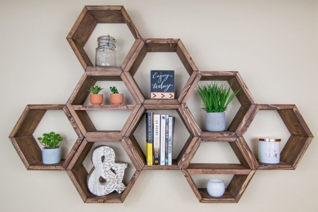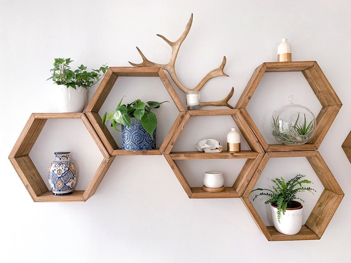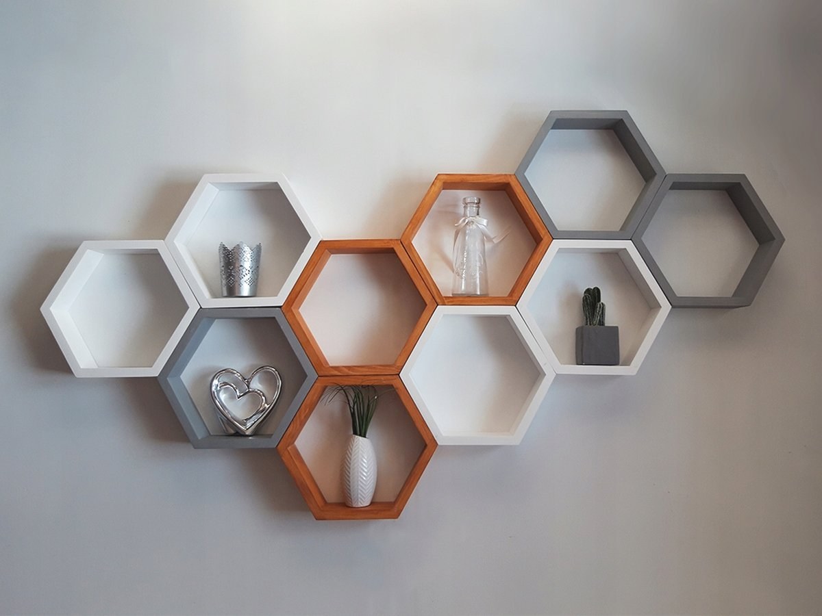 Полочки в виде сот в интерьере (57 фото)