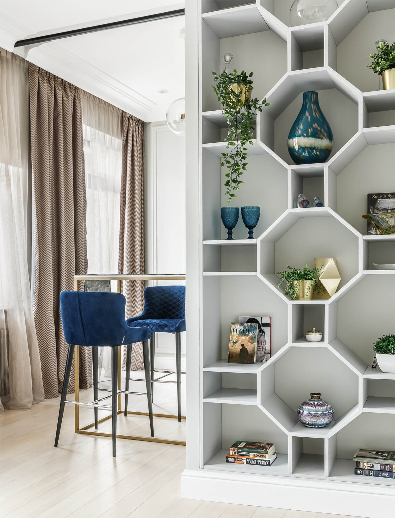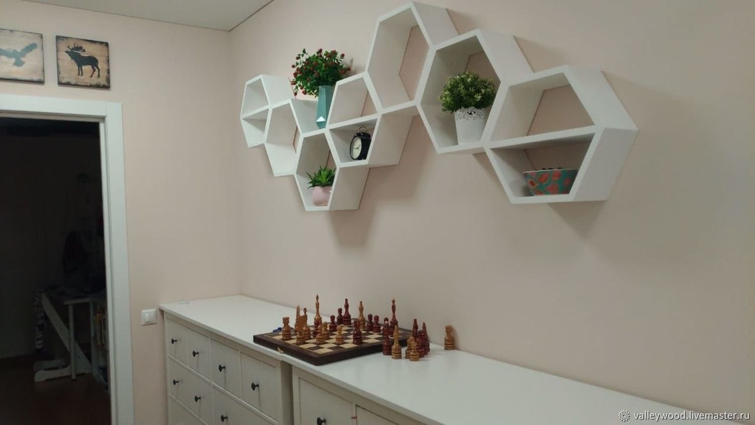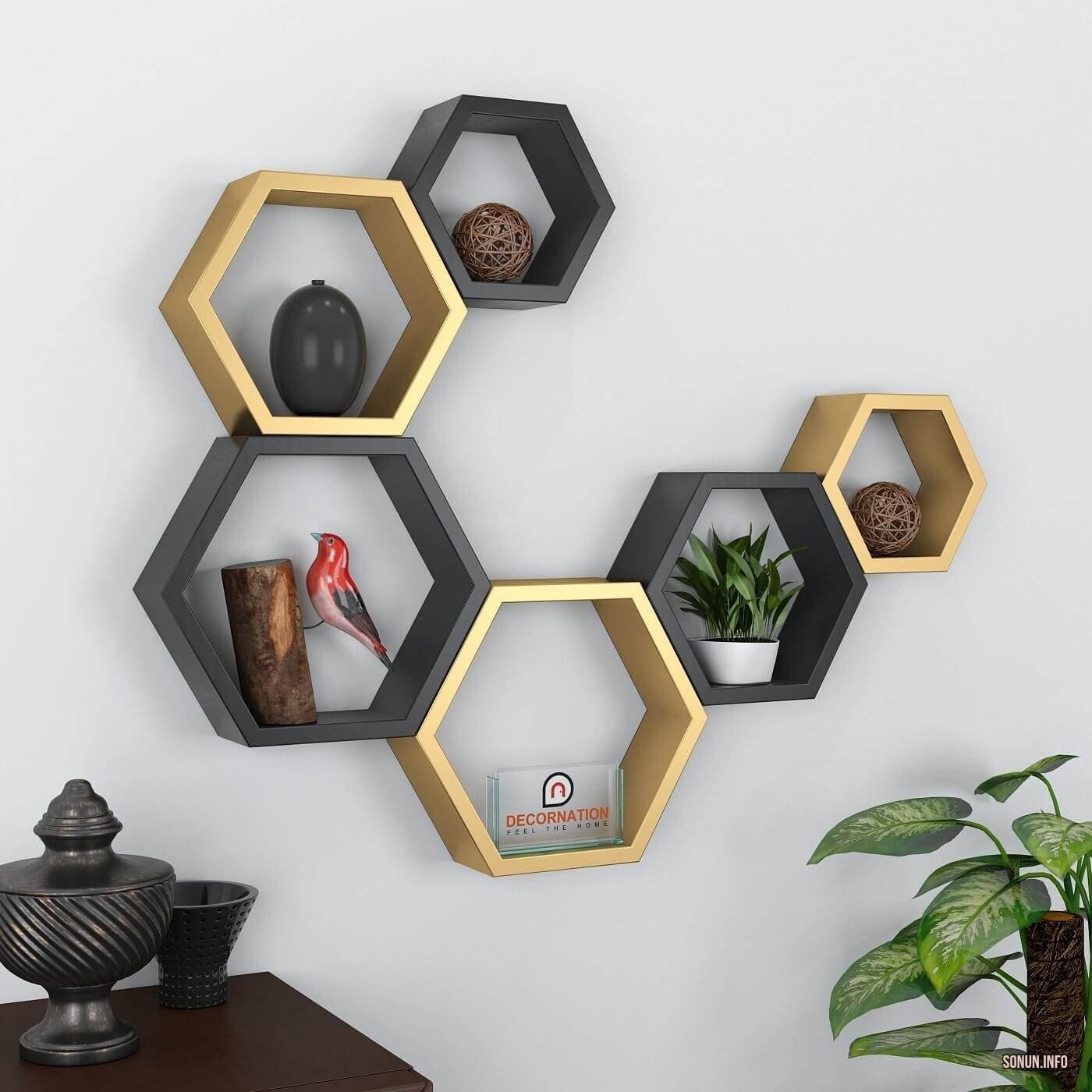 Полочки в виде сот в интерьере (57 фото)