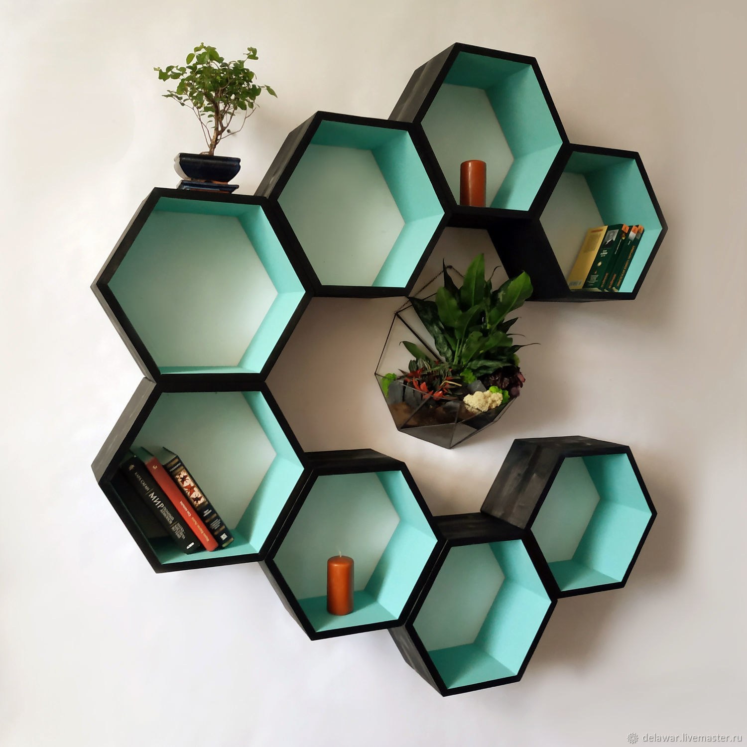 Декоративная полочка в виде сот