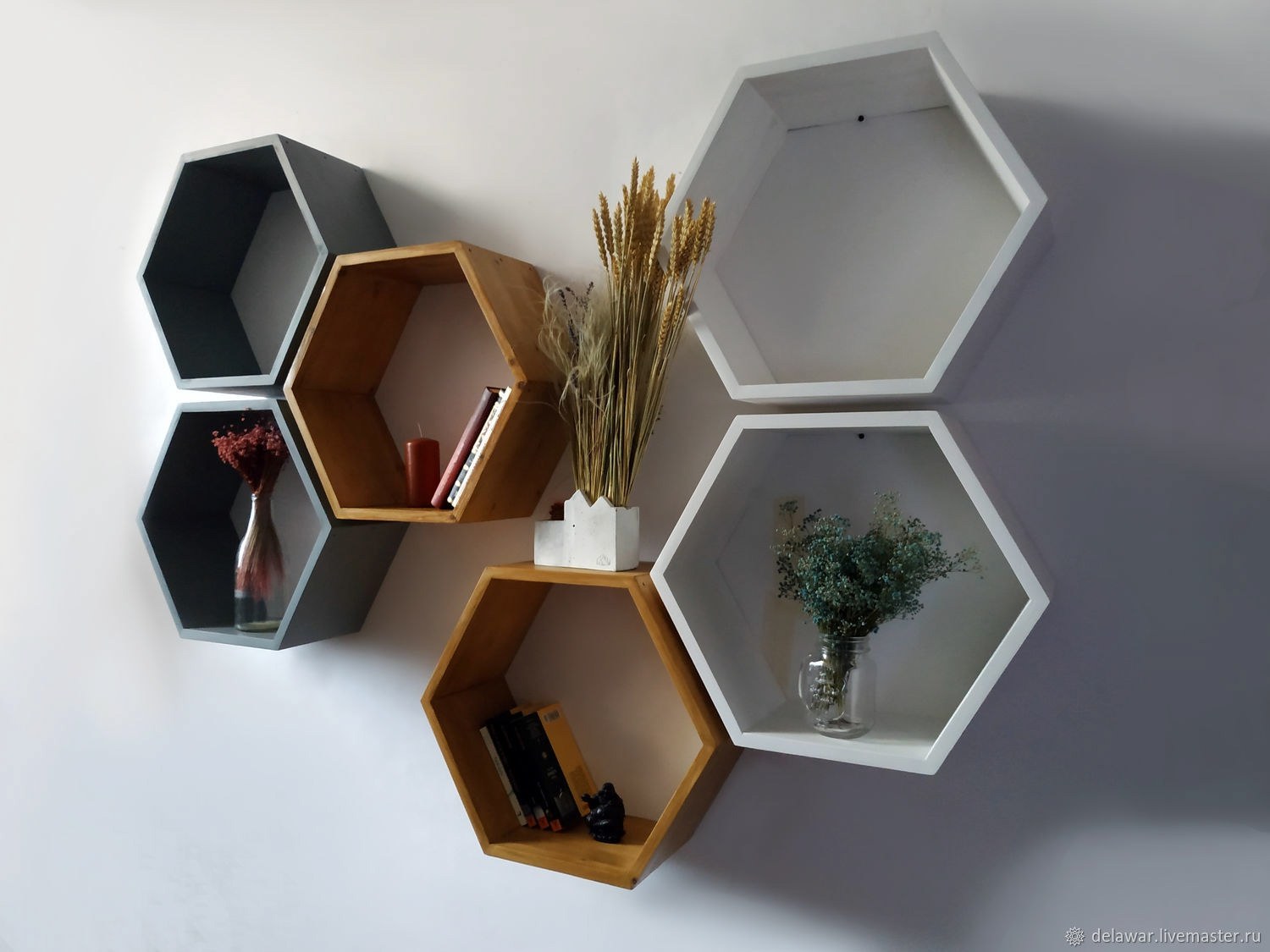 Настенные полки в виде сот