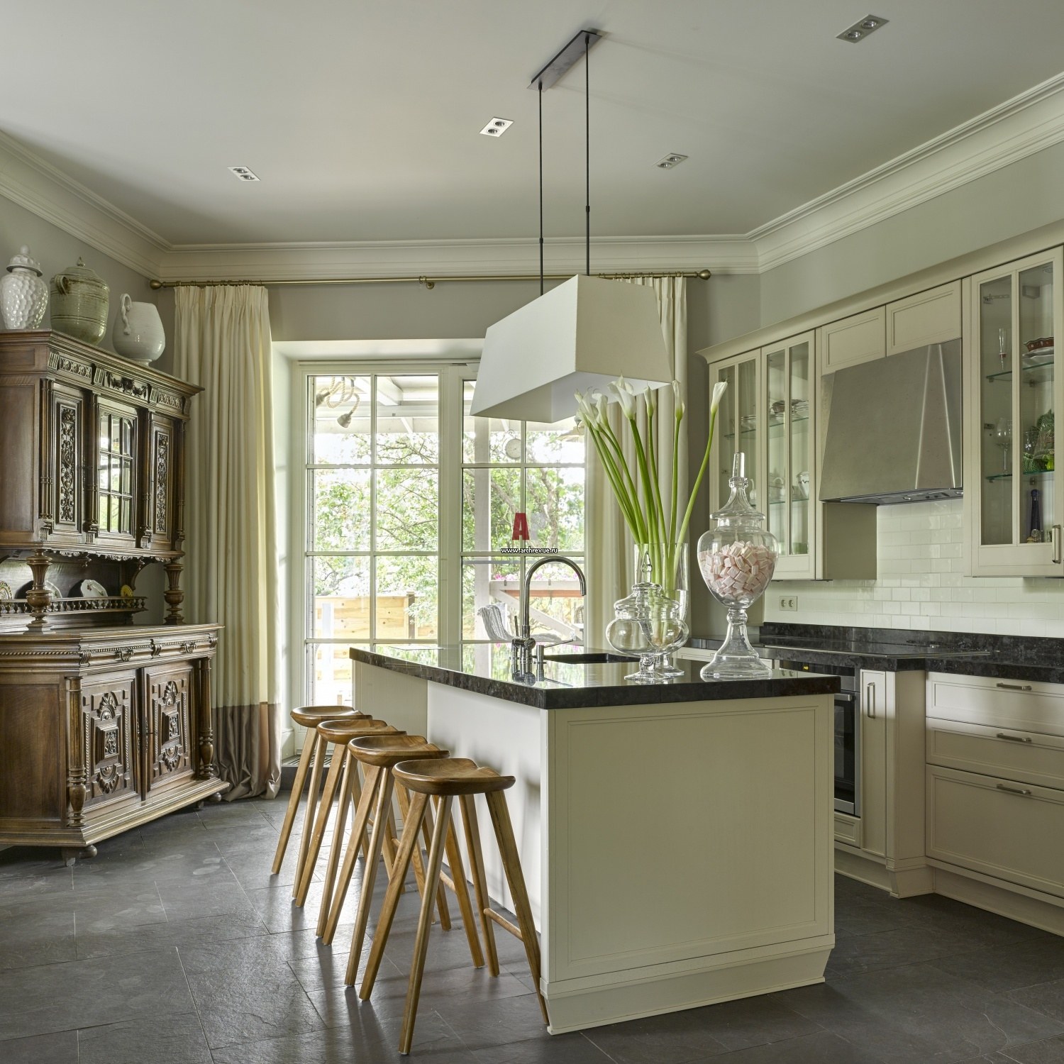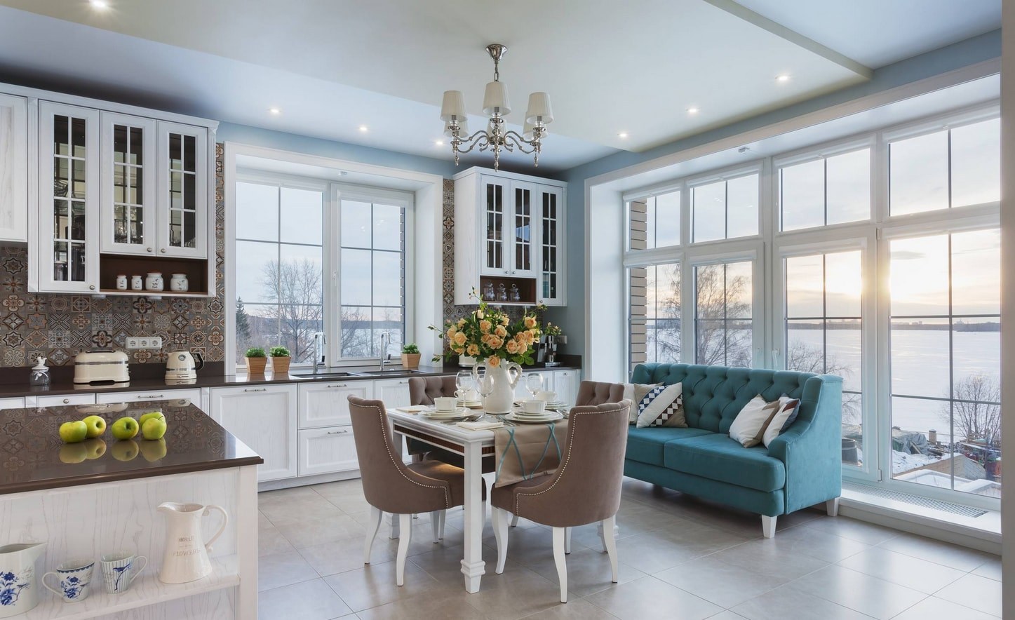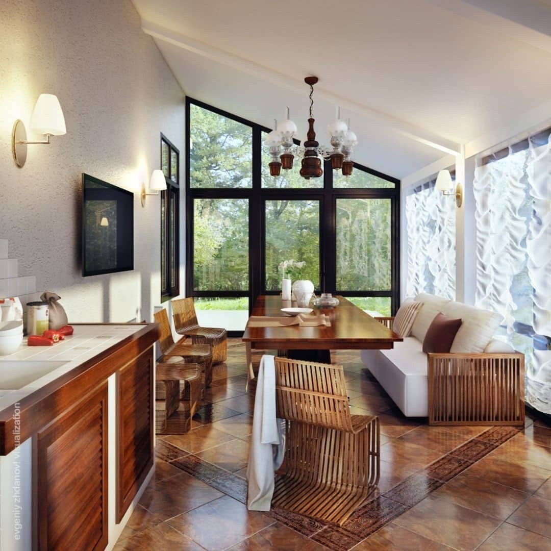 Интерьер кухни в частном доме с выходом на террасу (57 фото)