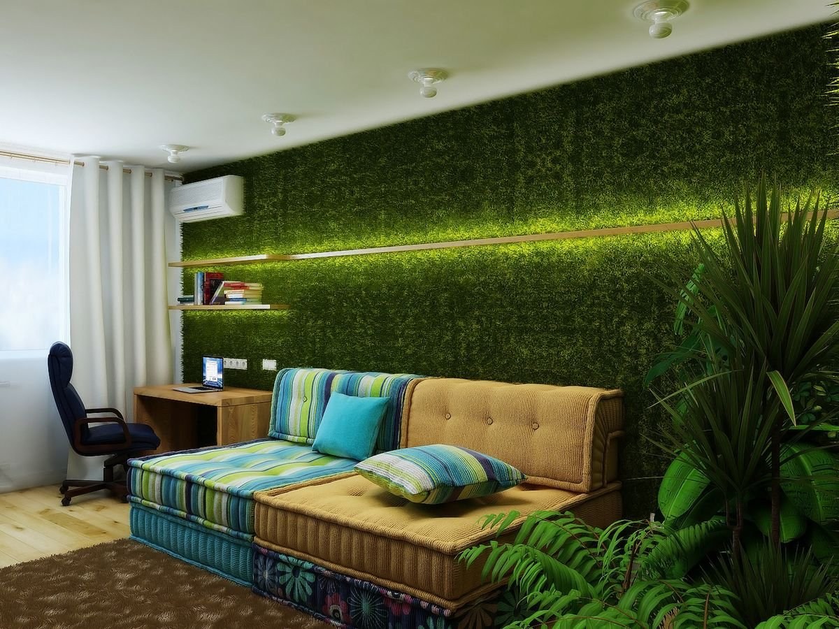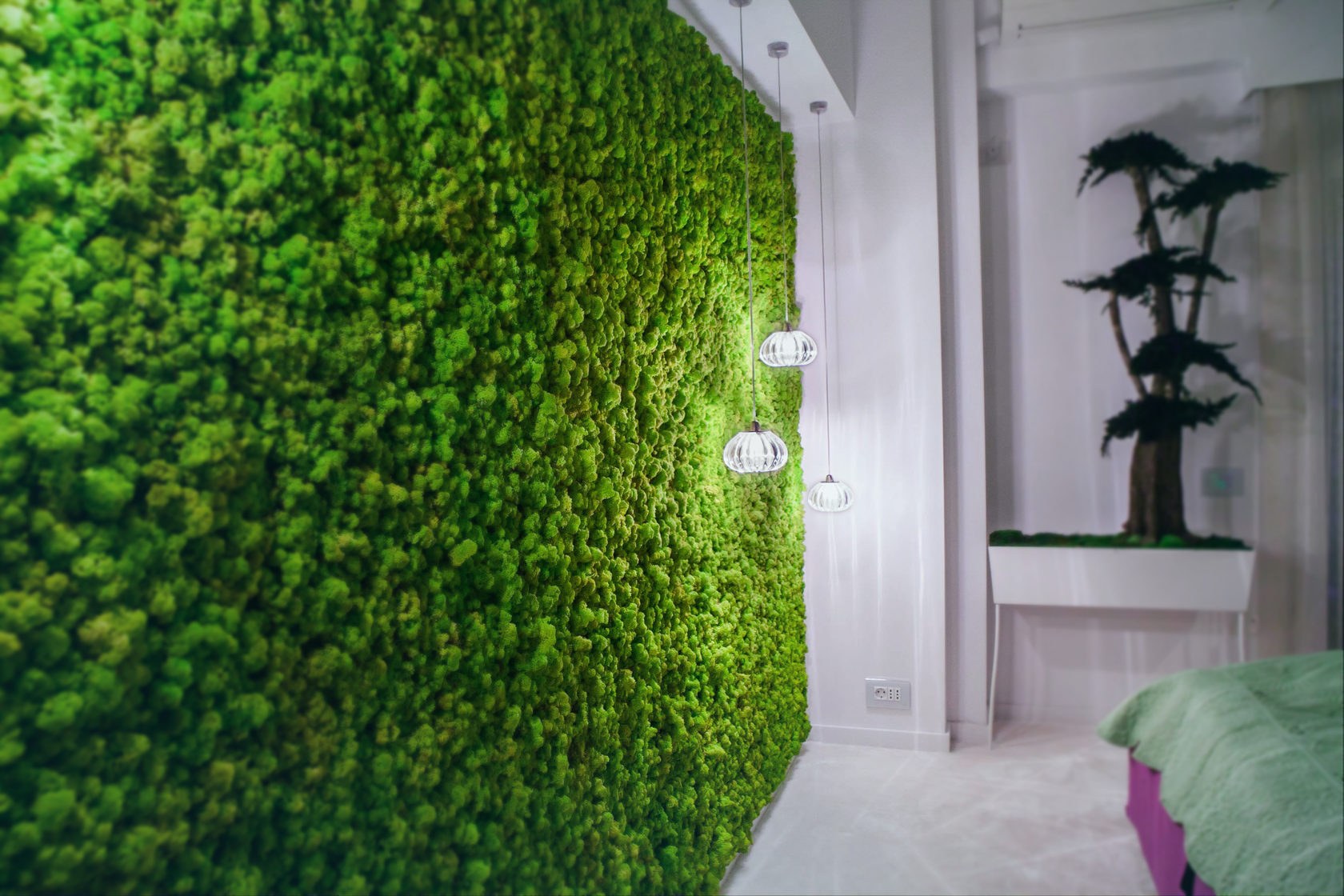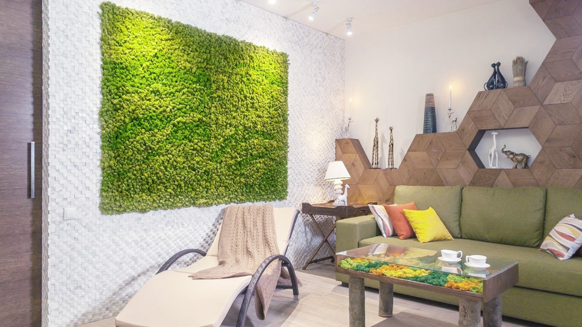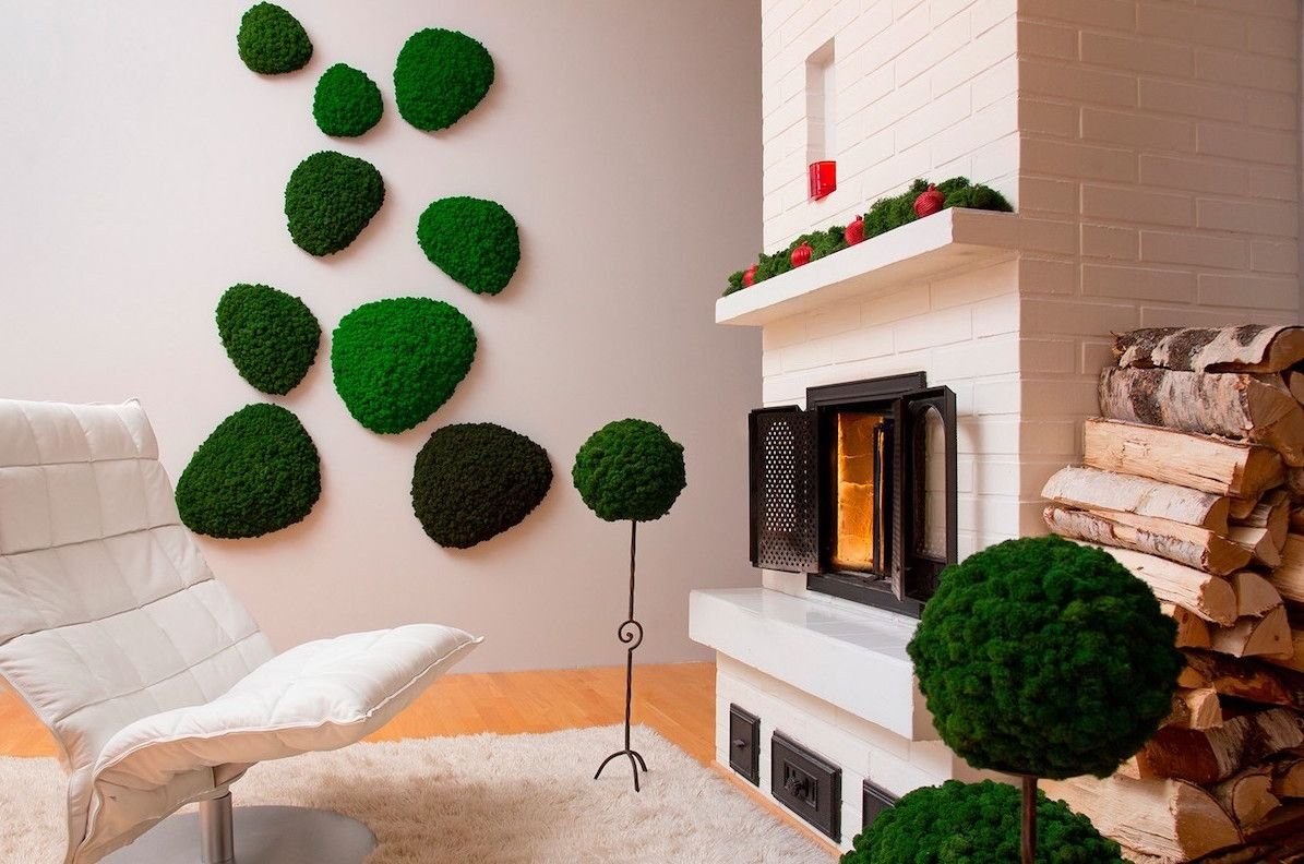 Искусственный мох в интерьере квартиры с чем сочетается (62 фото)