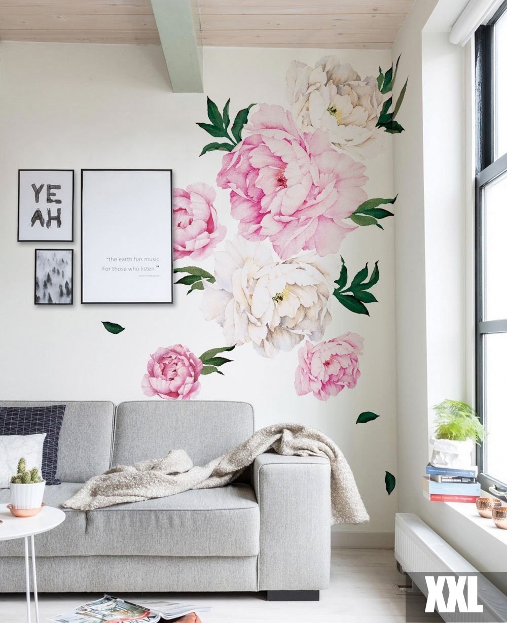 Пионы на стене в интерьере