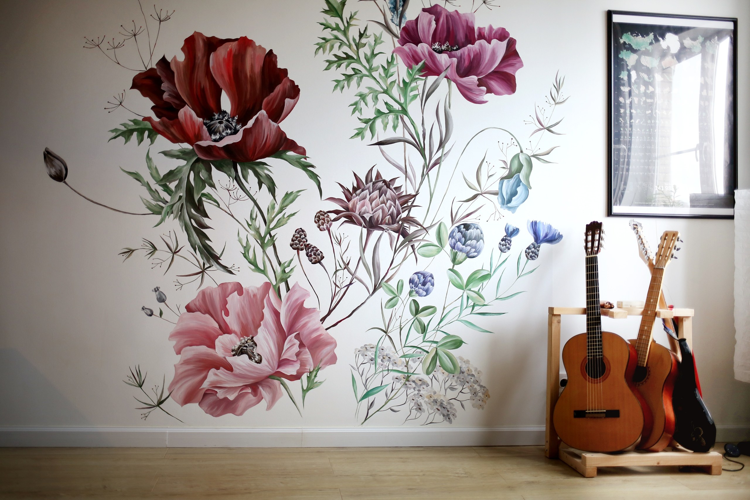Цветы на стенах в интерьере (55 фото)