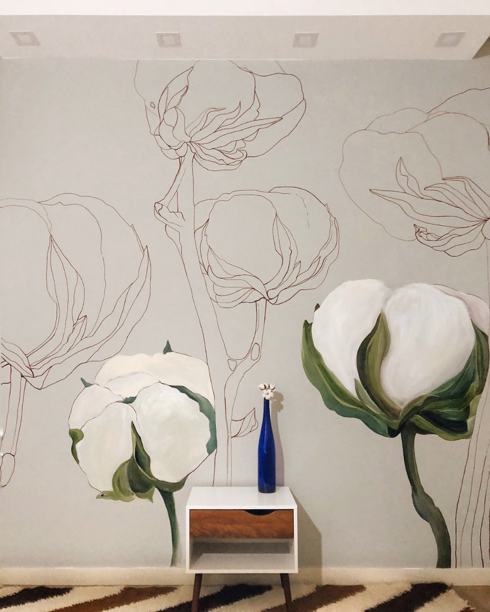 Цветы на стене в интерьере