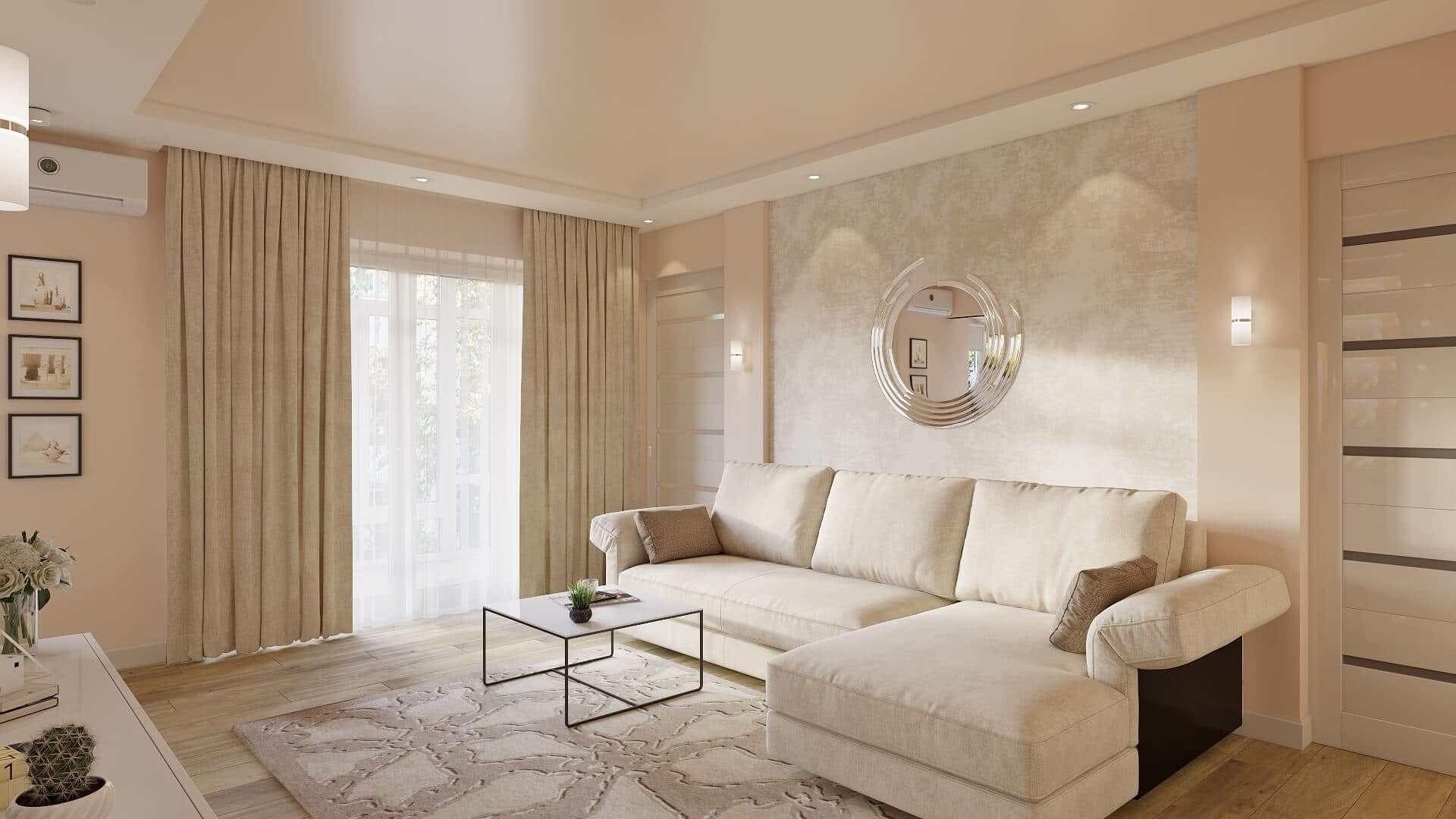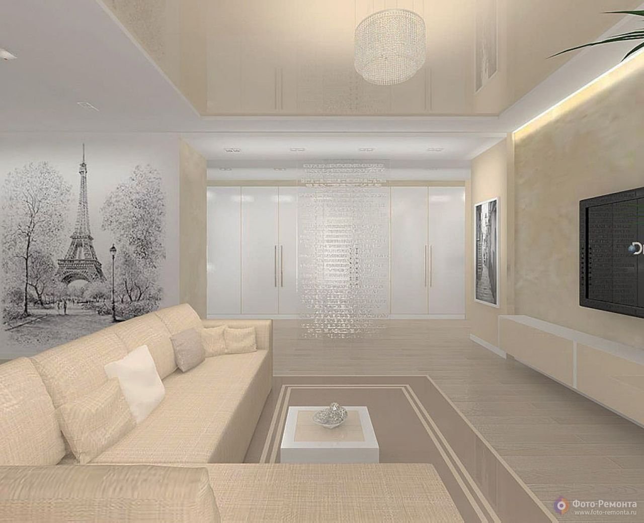 Гостиная в светло бежевых тонах