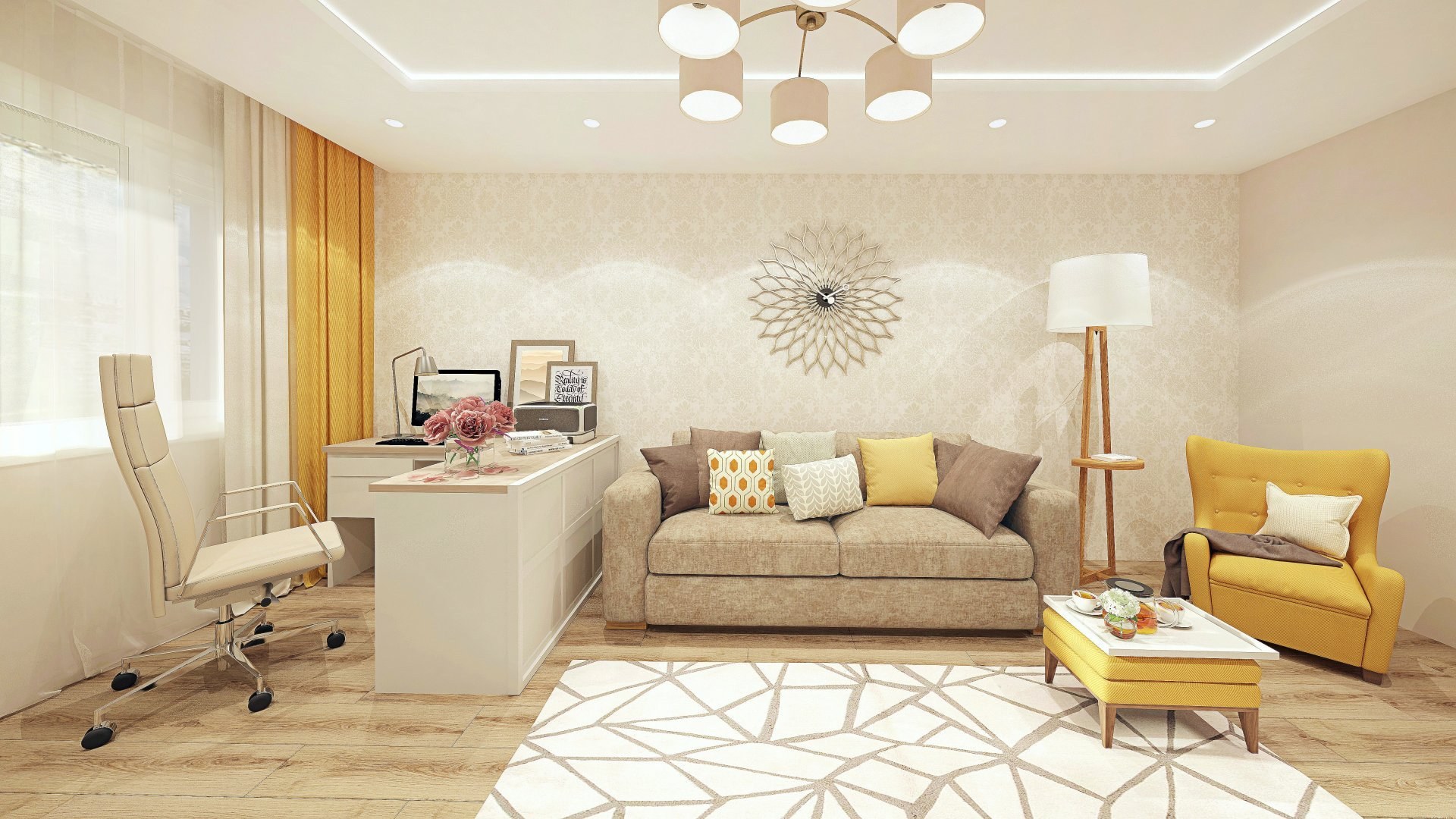 Гостиная с бежевыми обоями