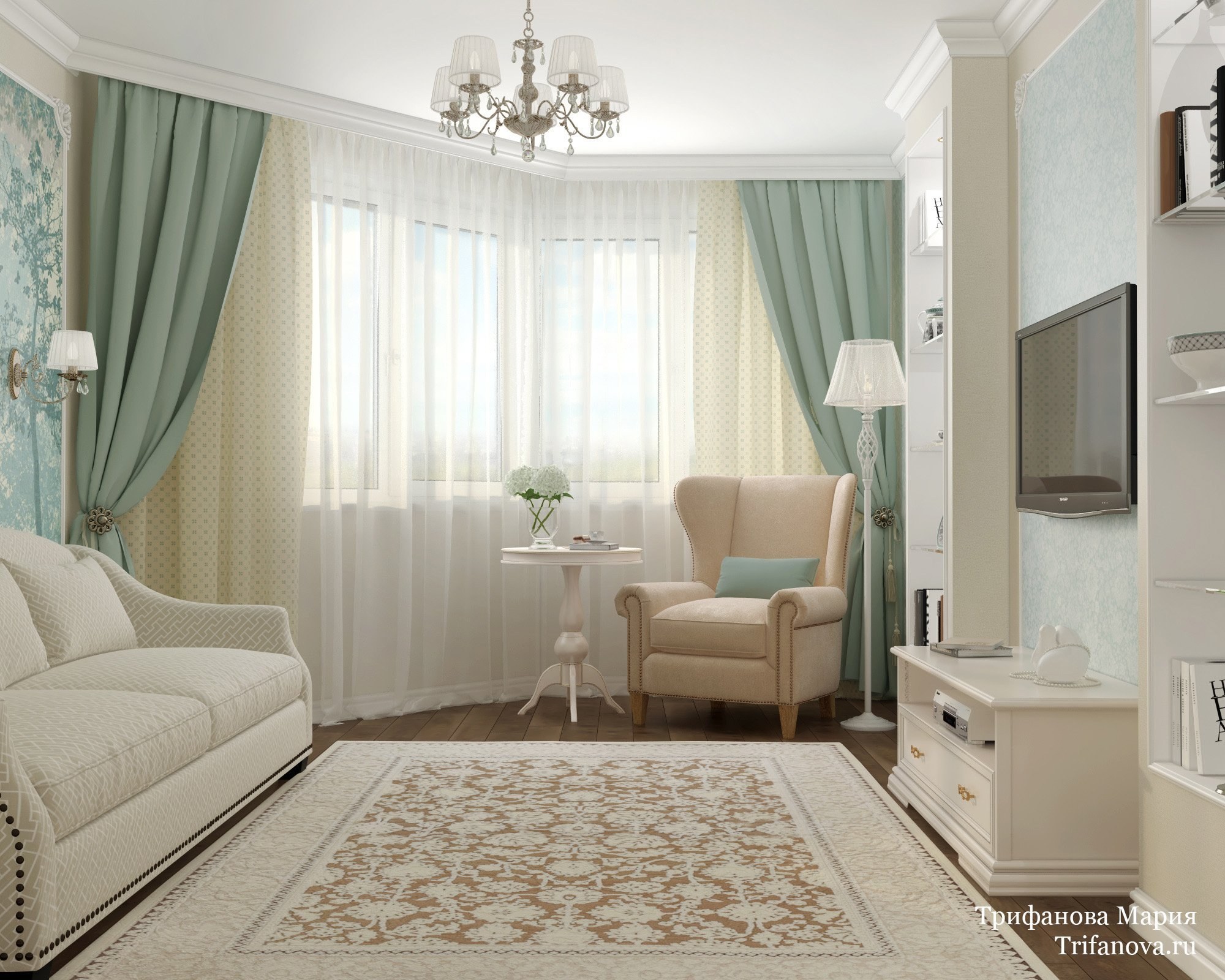 Светлая гостиная в классическом стиле